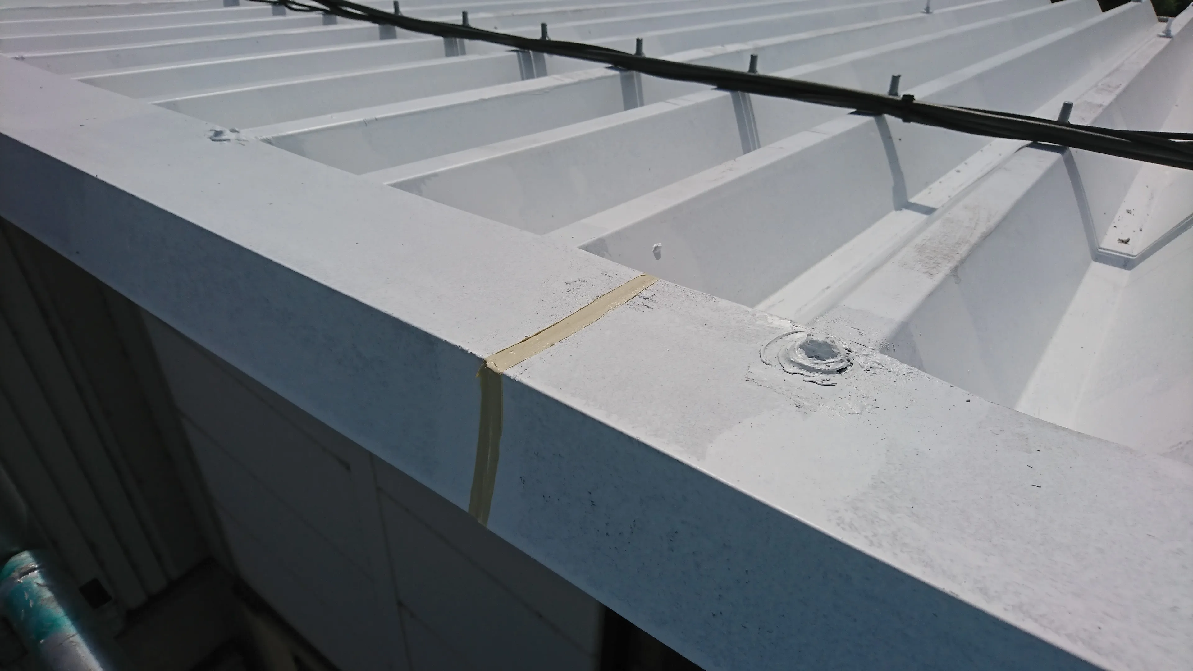 重なり部分のコーキングが劣化しているのでコーキング処置をした後に2液のエポキシ系錆止めを塗装。