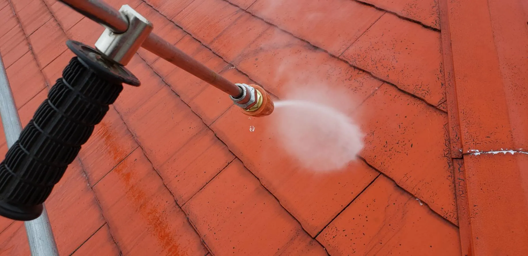次に高圧洗浄にて屋根を綺麗に洗浄します。