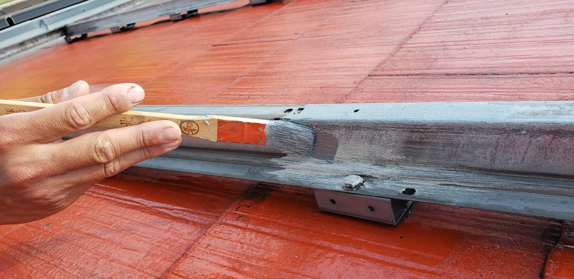 ソーラーの架台の錆びたり傷んだ箇所もMT・シーエフ塗装後に亜鉛メッキ塗料で塗装。