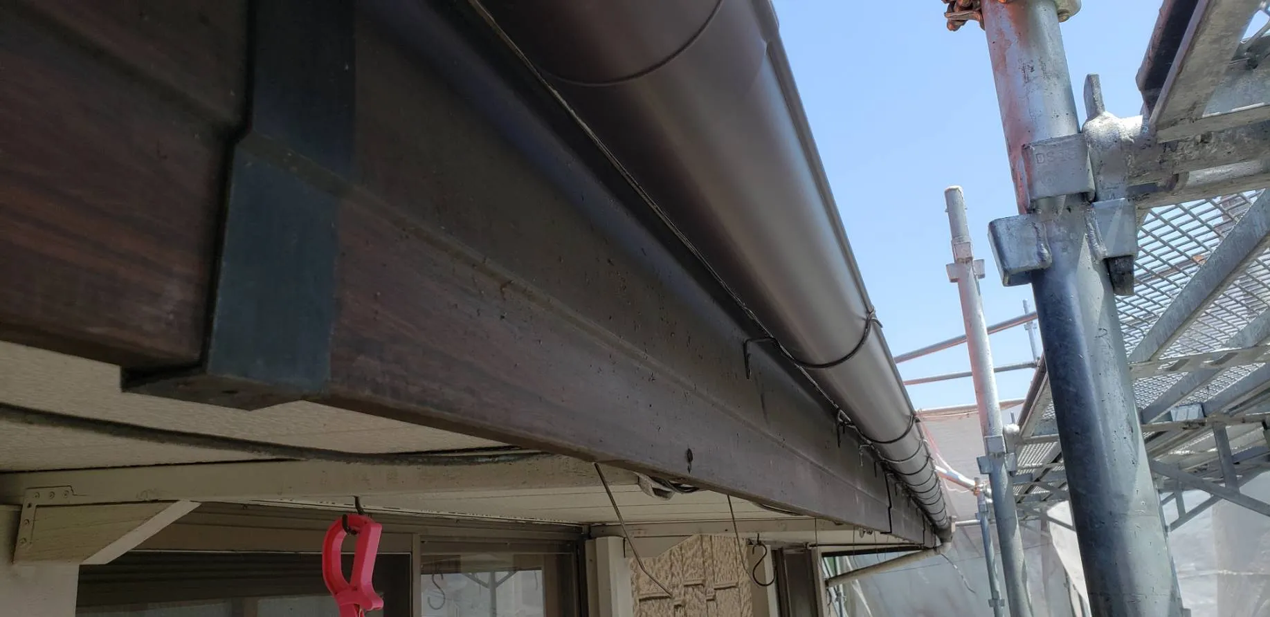 雨漏り修理と屋根塗装と腐食した雨樋の交換です。