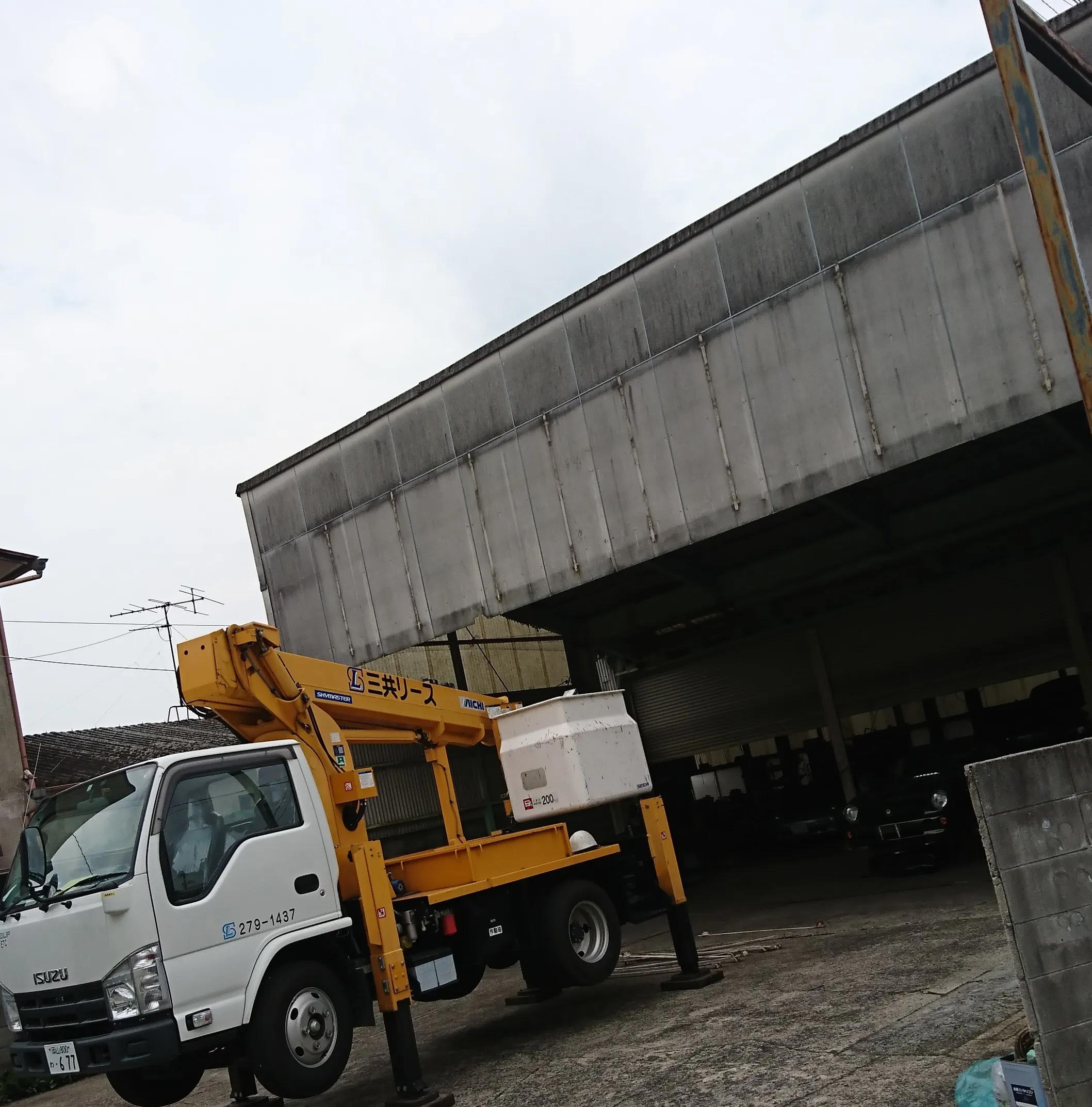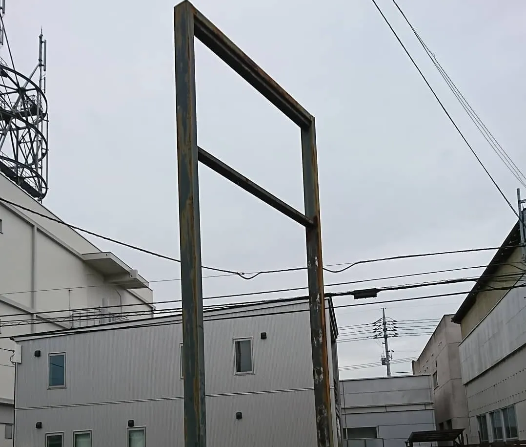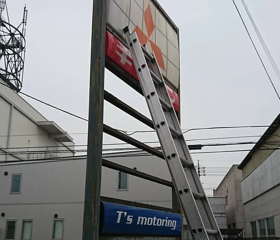 まずは鉄骨塗装工事に備えて、古い看板と必要なくなった