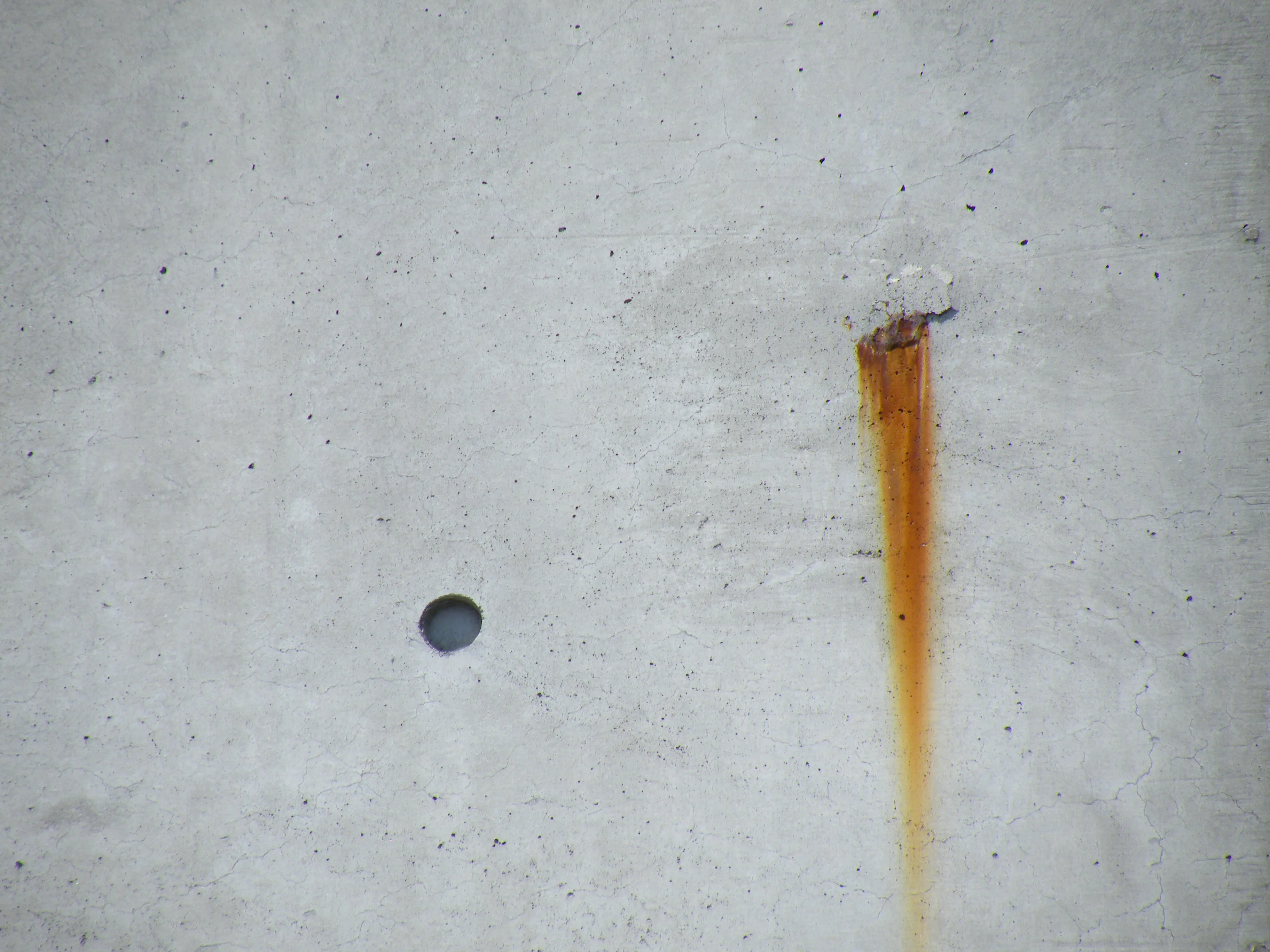 コンクリートが爆裂して中の鉄筋が錆汁を垂らしています。