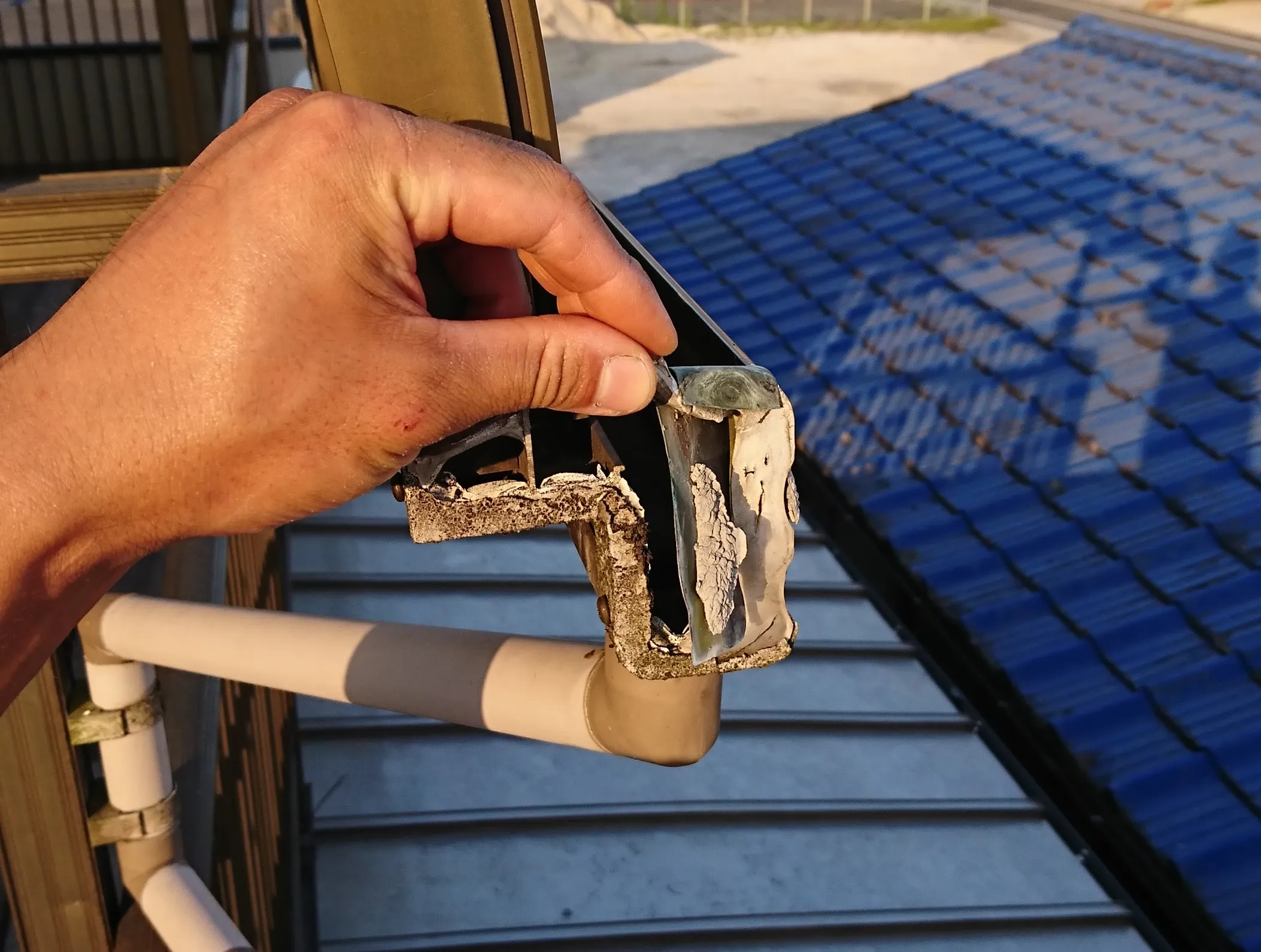 傷んで破損している樋は補修や新設で差し替えてから塗装工事にかかります。