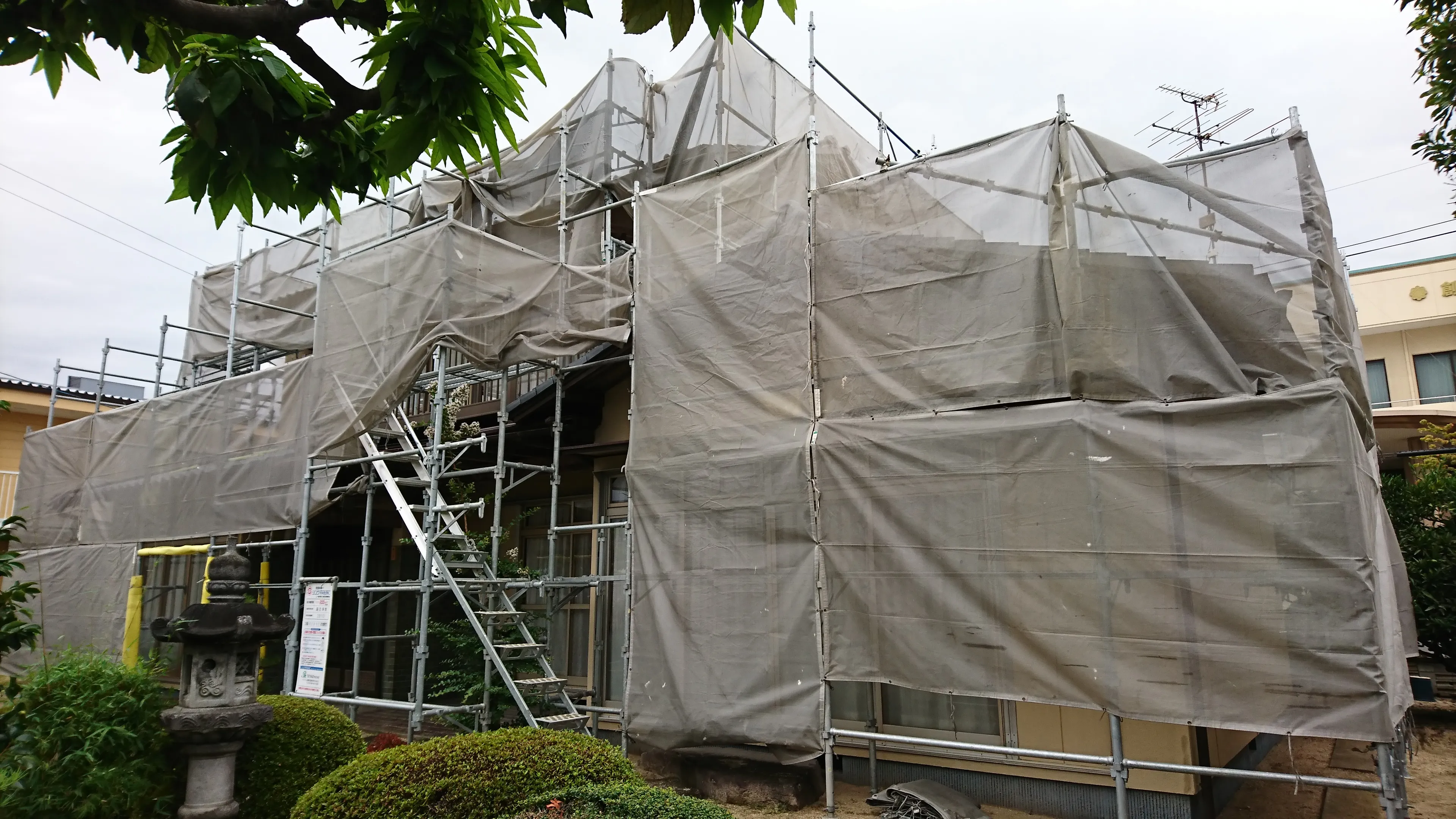 まずは安全に良い仕事ができるよう仮設足場を組み立てます。