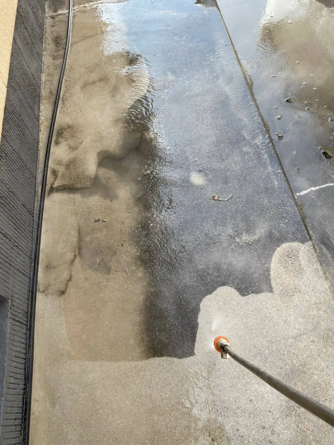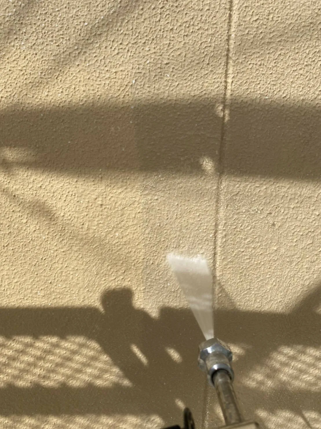 高圧洗浄時に外側のブロック塀も綺麗に洗浄しているので