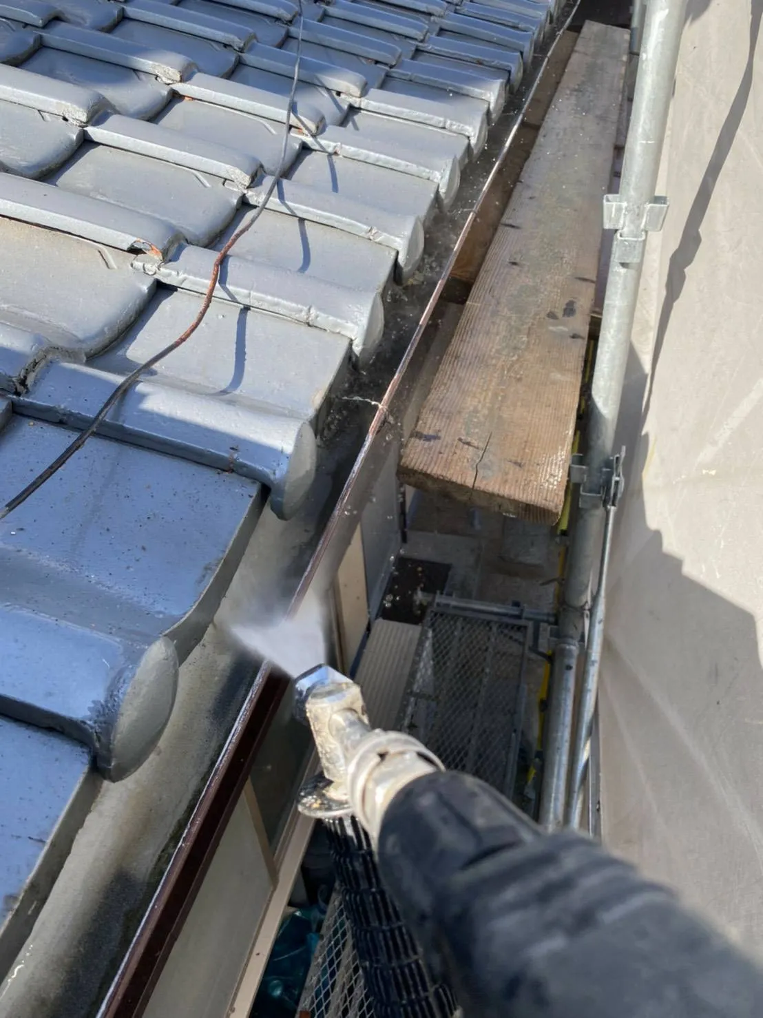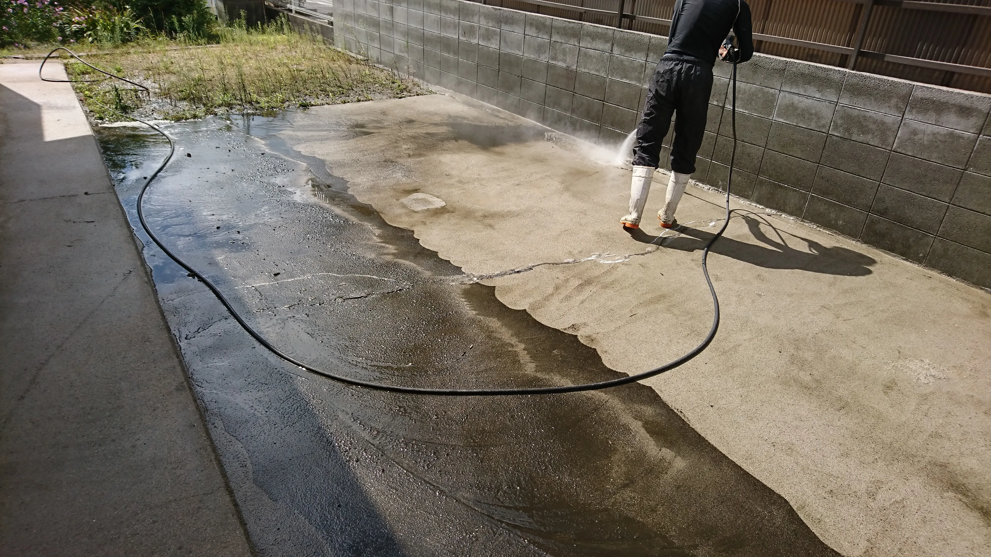 次に高圧洗浄機を用いて洗浄作業を行います。