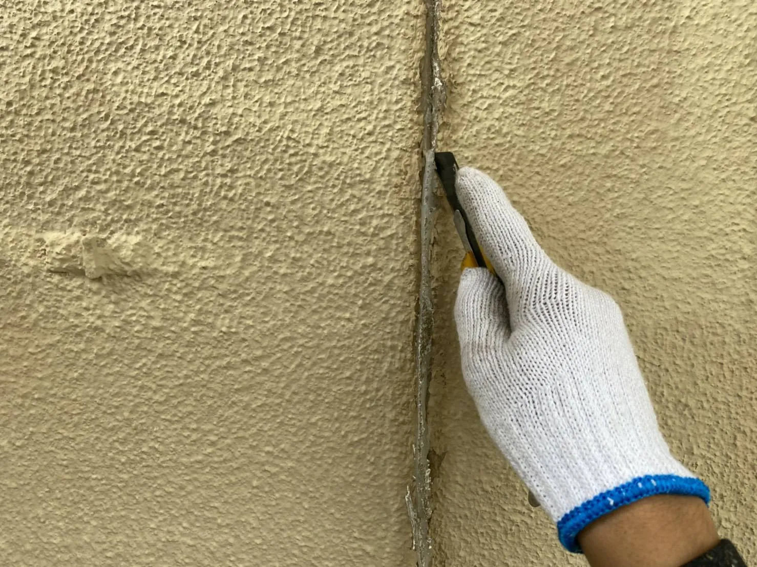 まずは古いコーキングと塗膜を綺麗に撤去していきます。