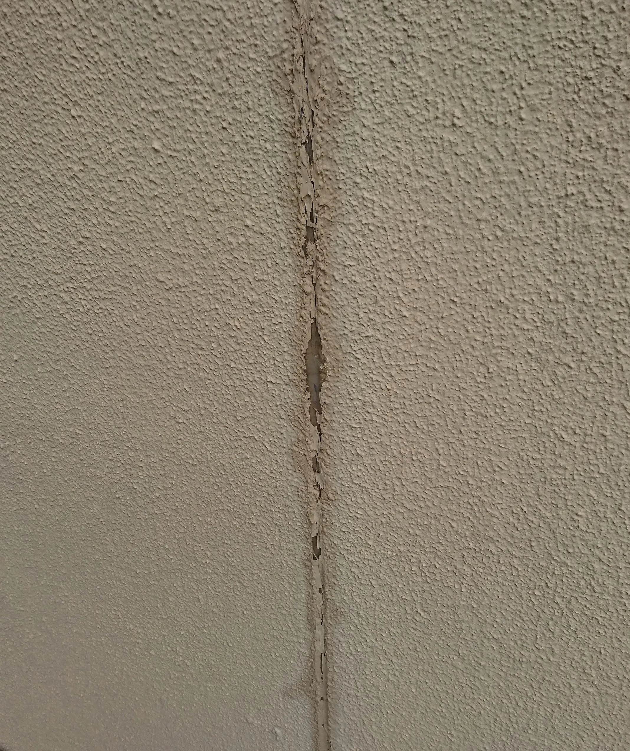 この他にも壁に発生したクラックを一つ一つ丁寧に補修していきます。