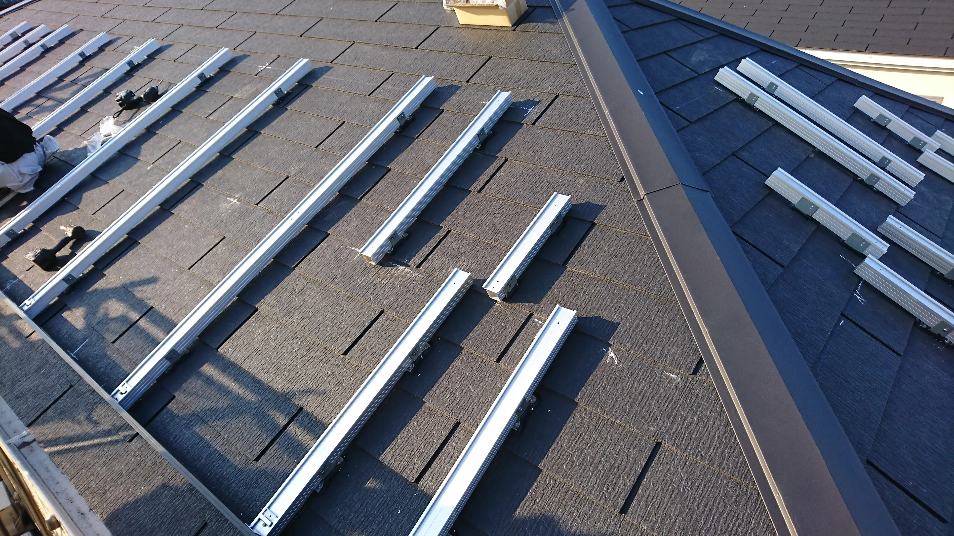 パネルの割り付け後に、パナソニック製純正架台を設置していきます。