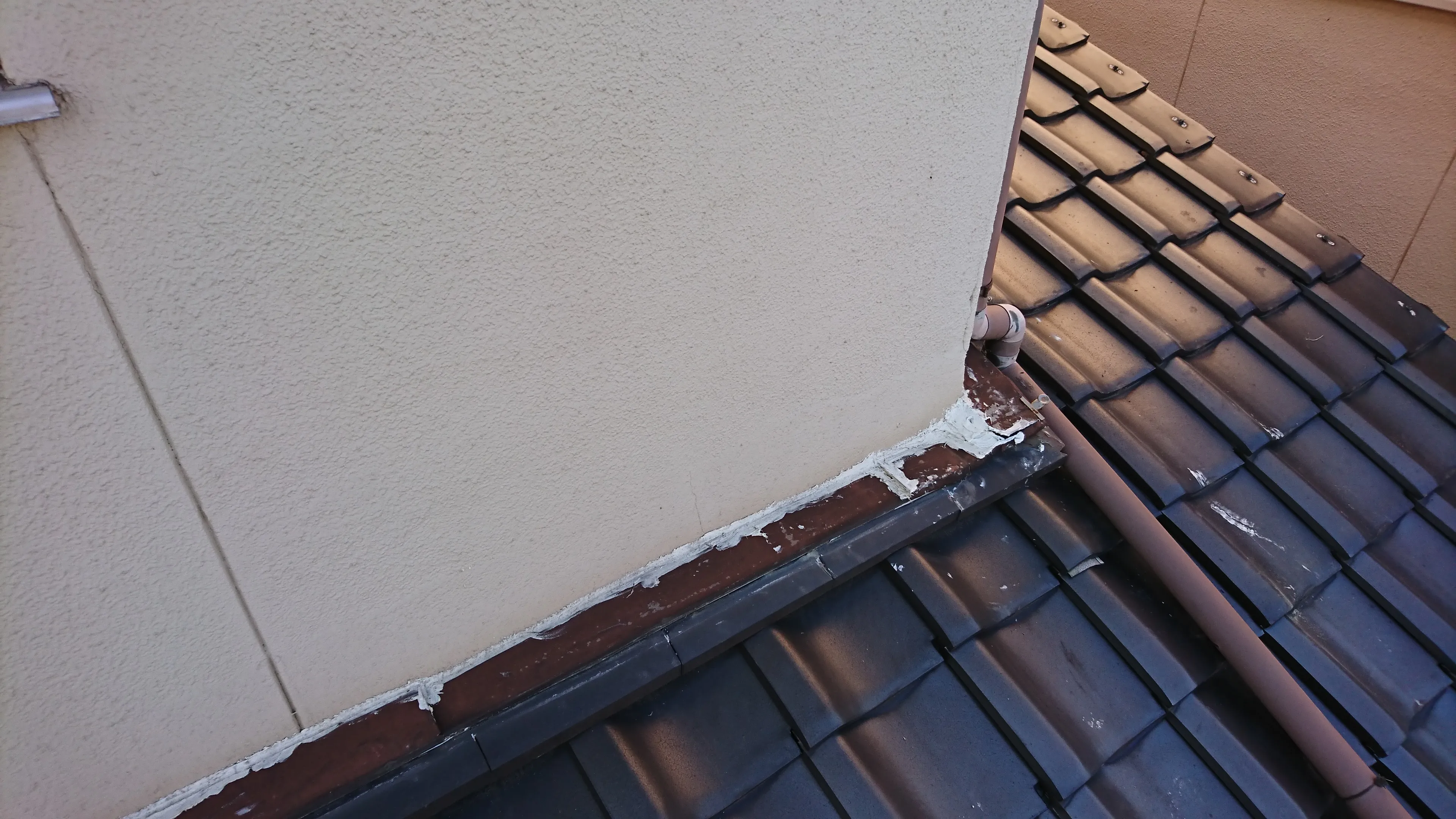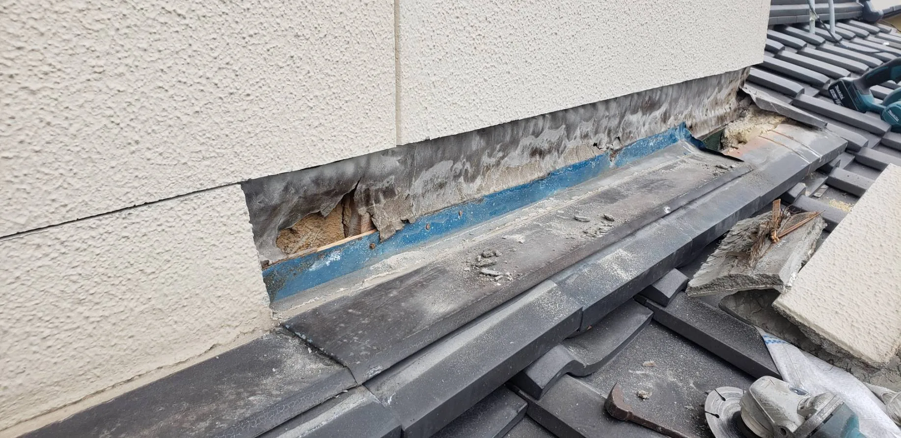 入れられていて壁からの雨水が流れずに雨漏りを引き起こしているようです。