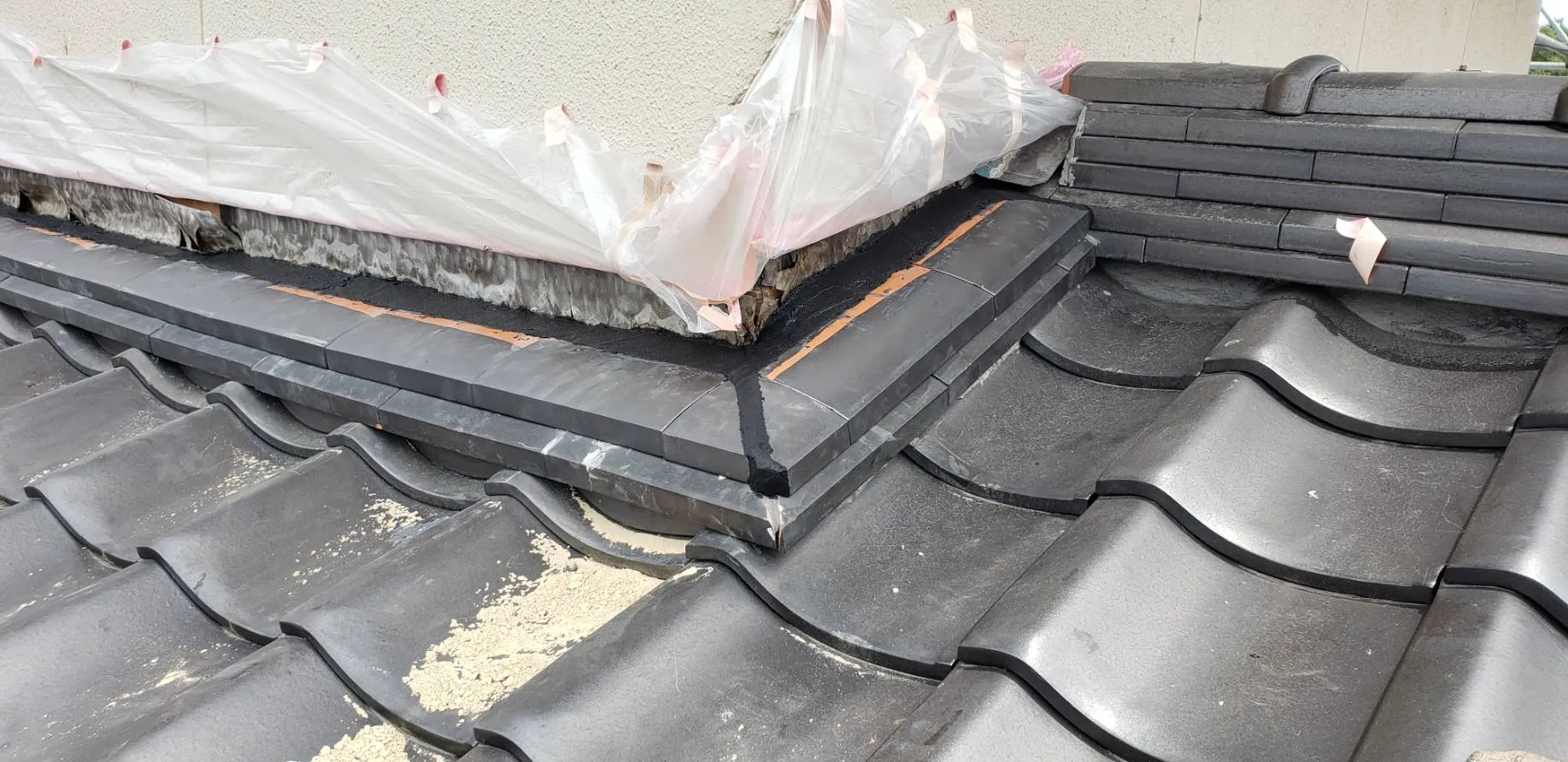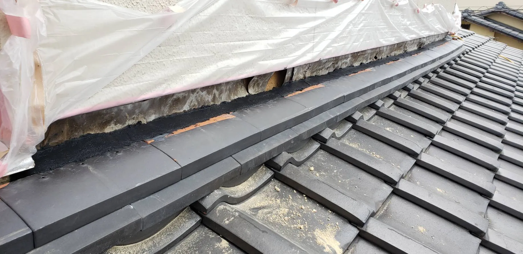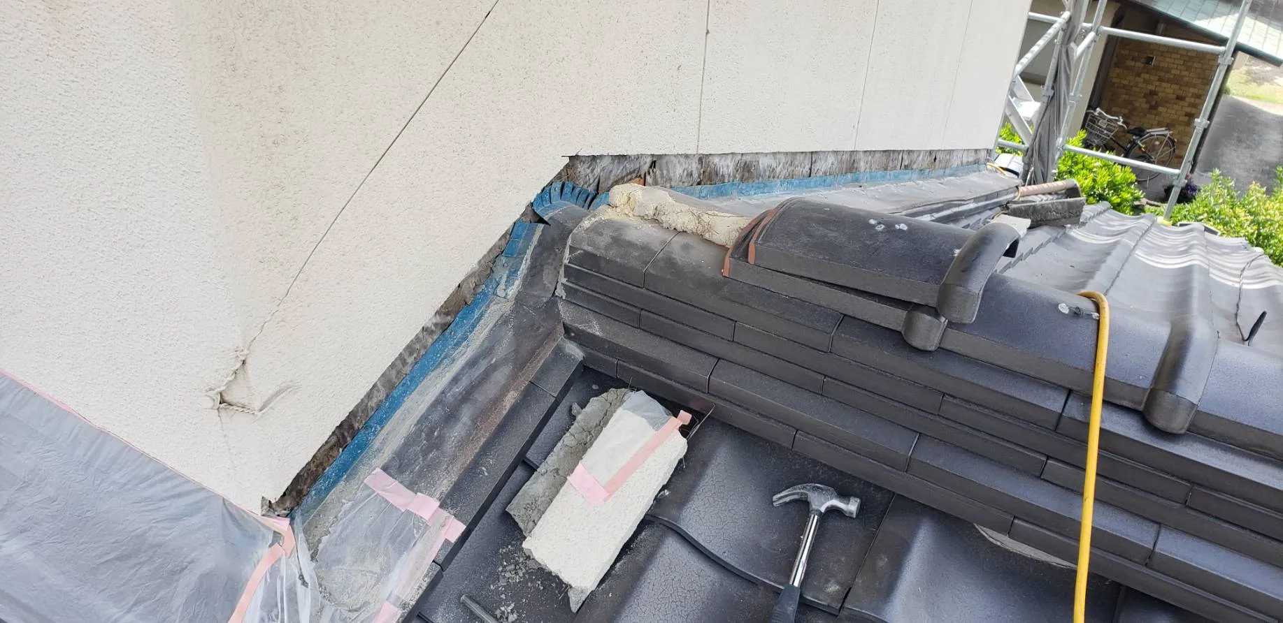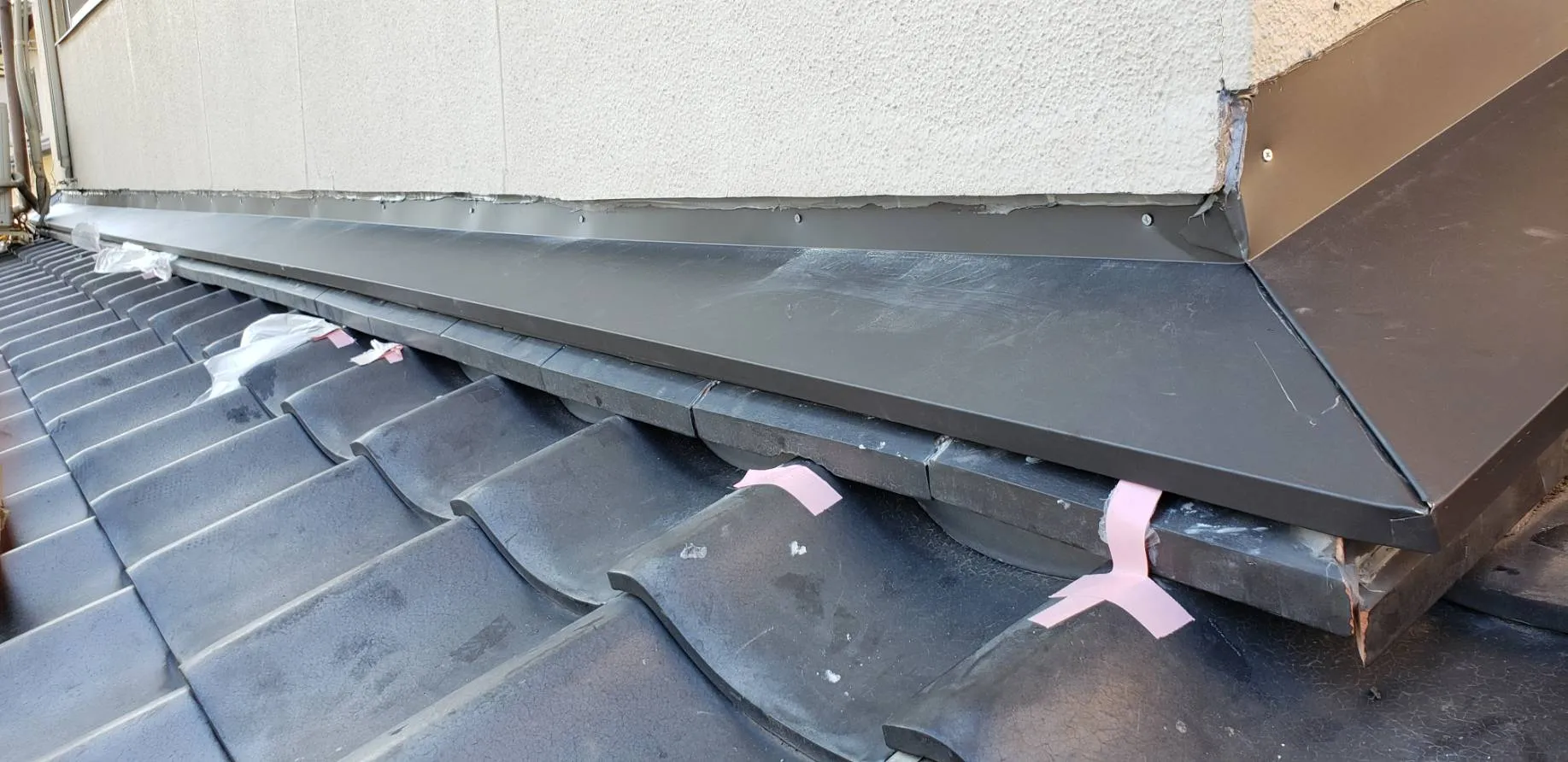 横長の部位(のし瓦といいます)を水切り(茶色い部分)に無理やり