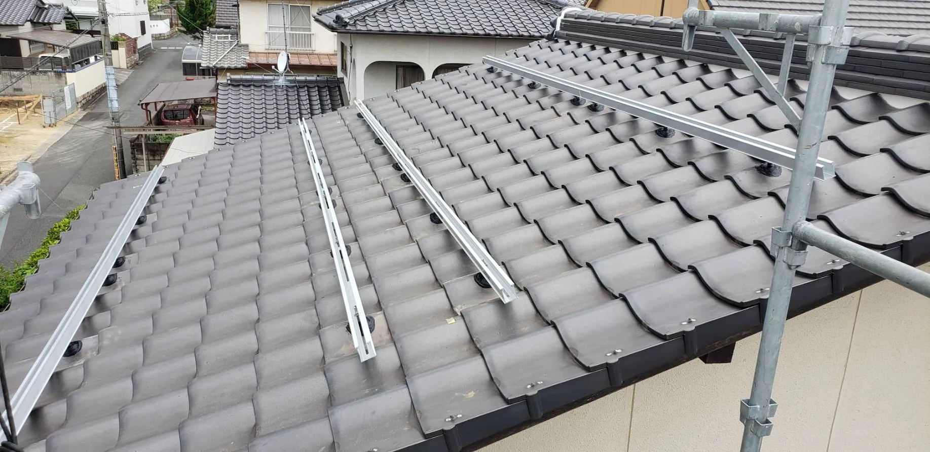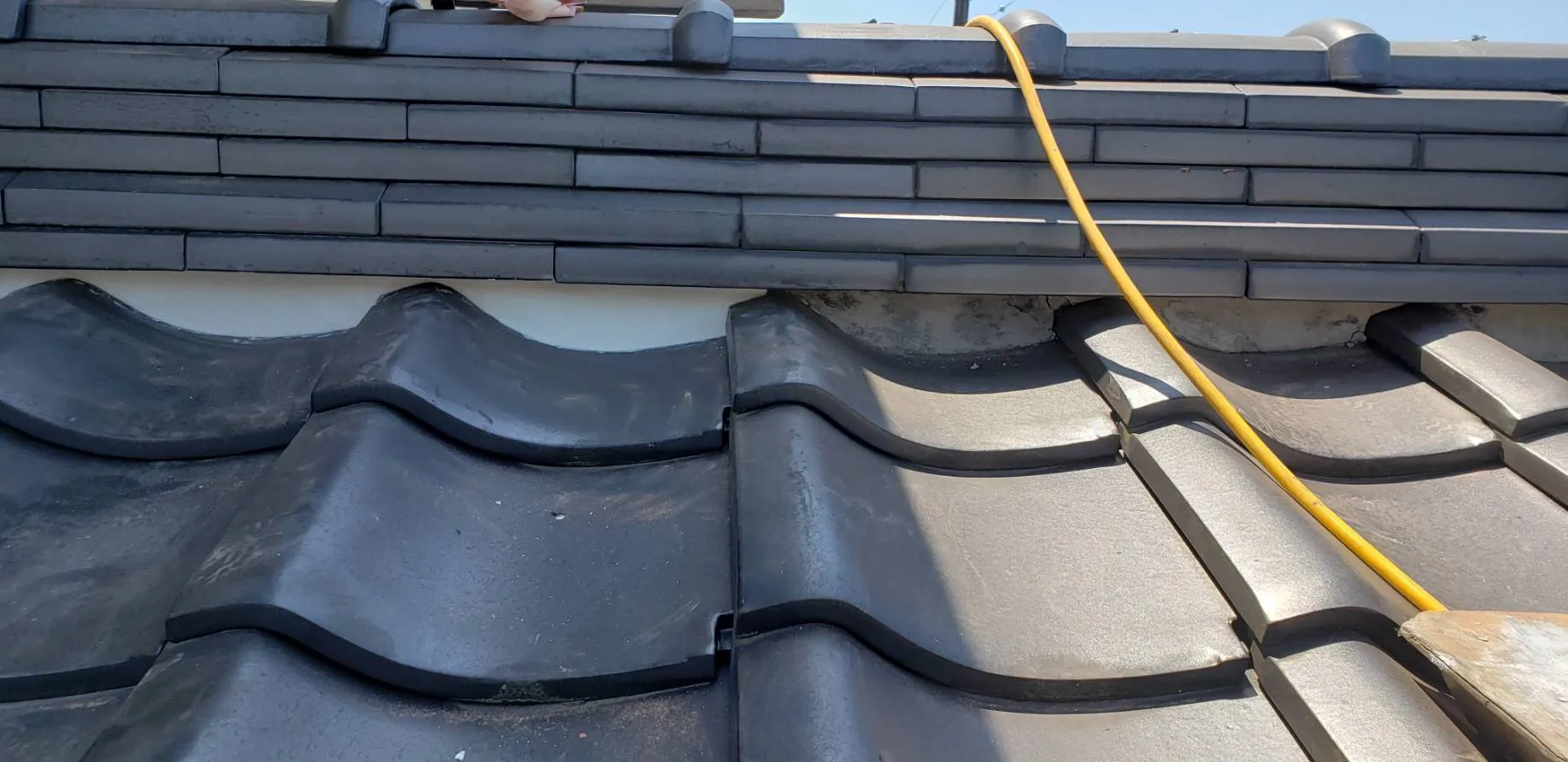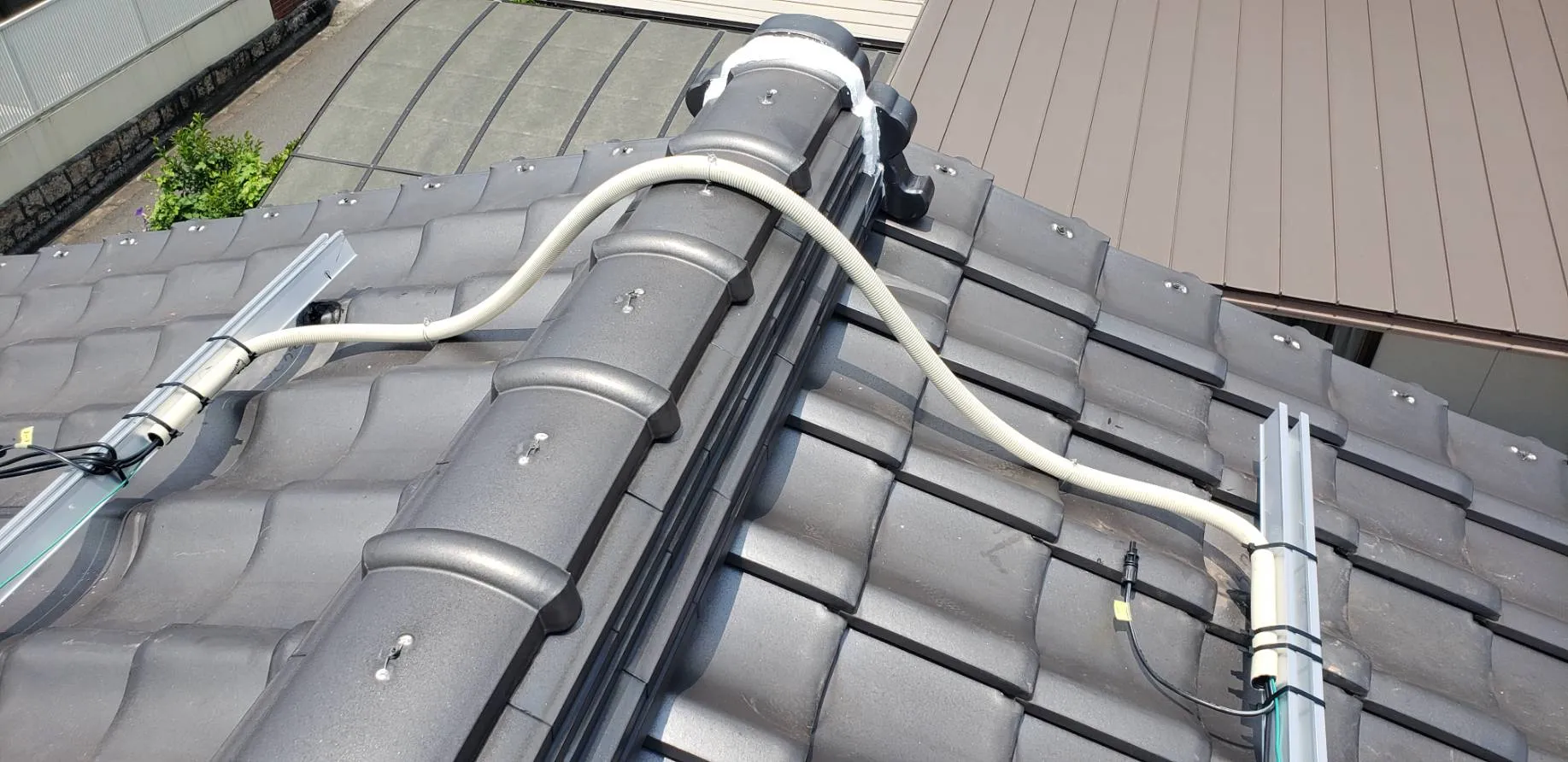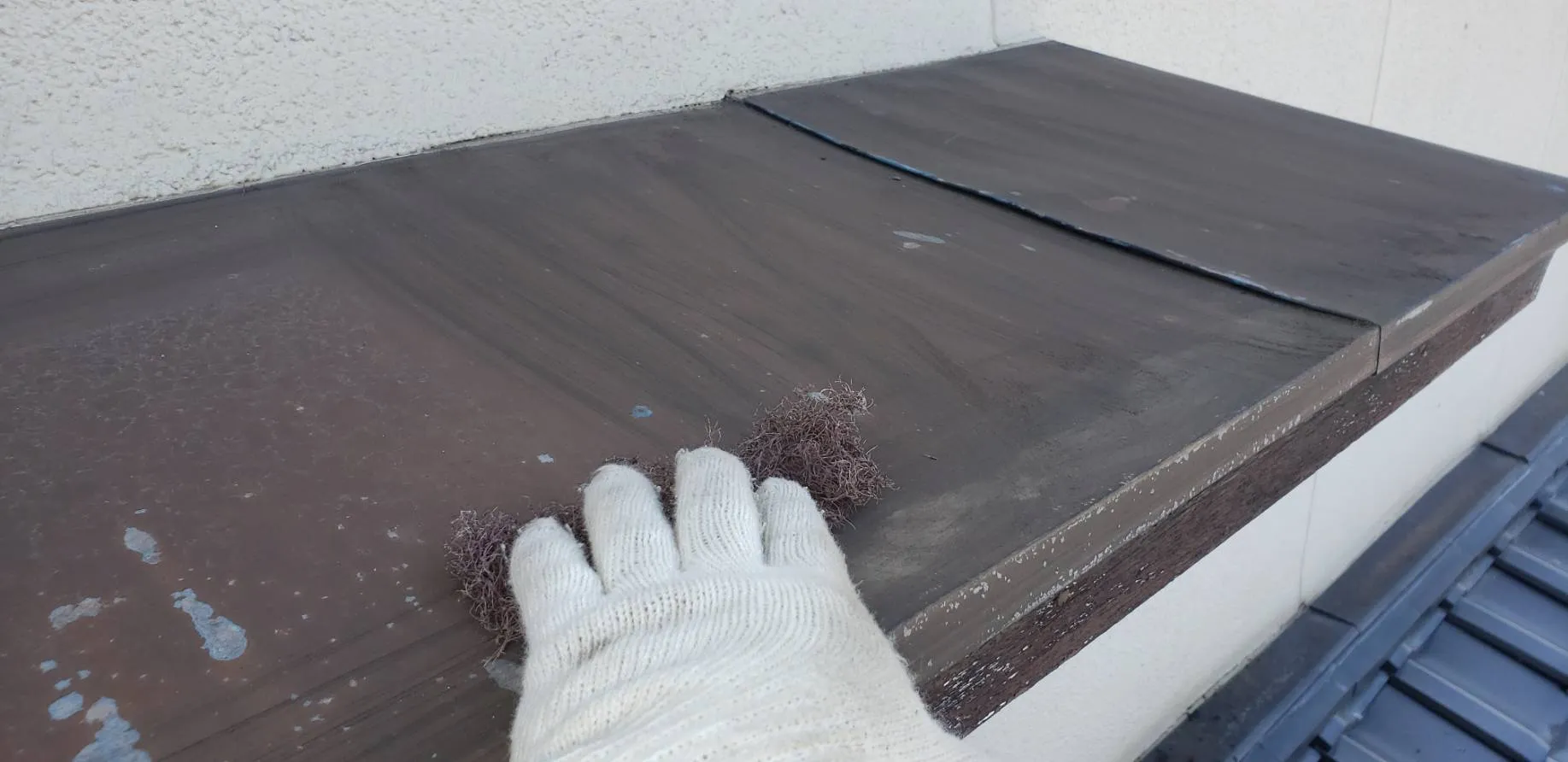 横長の部位(のし瓦といいます)を水切り(茶色い部分)に無理やり