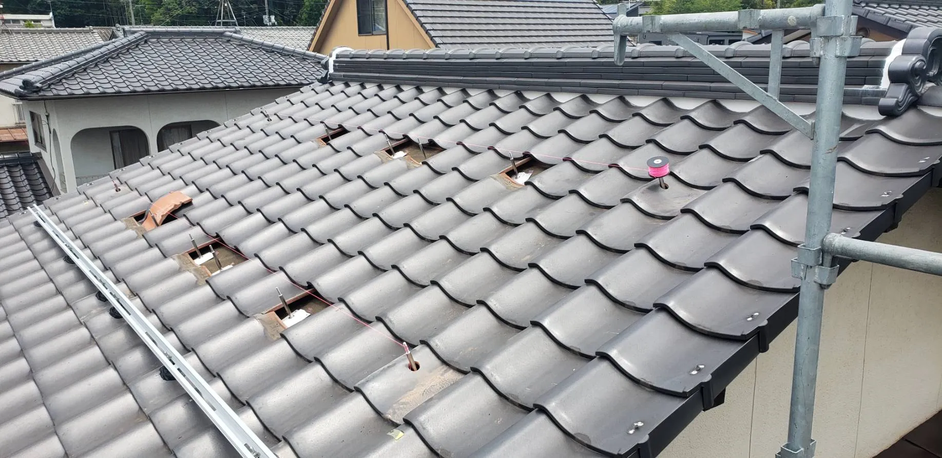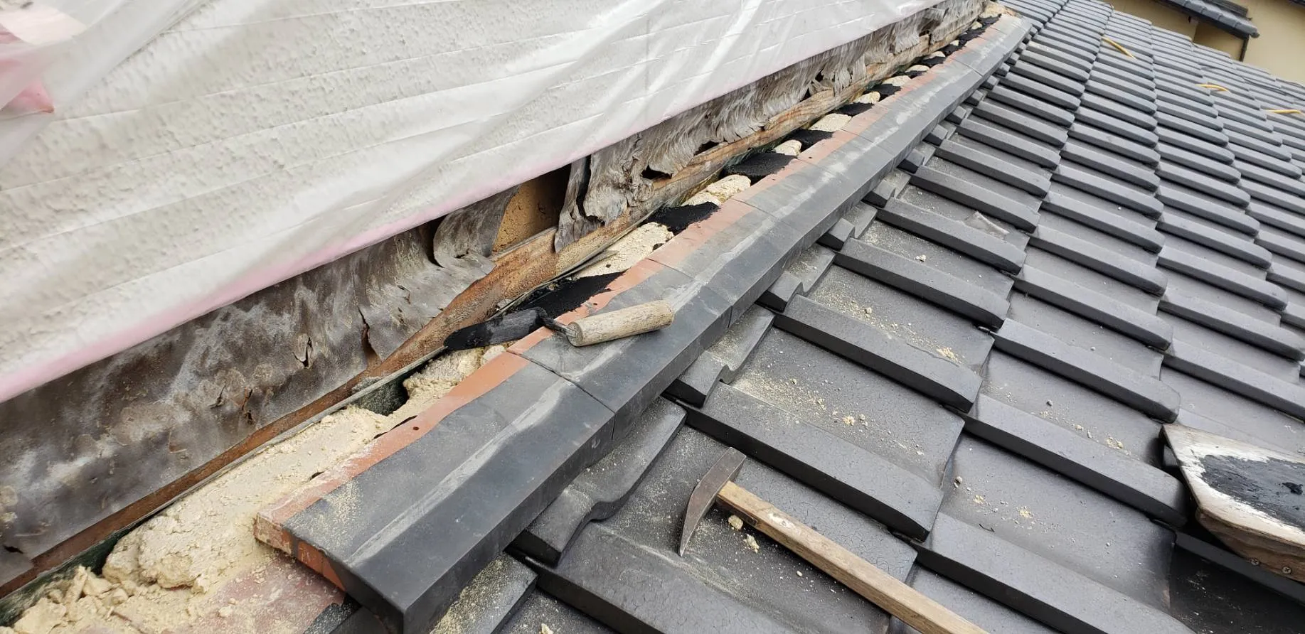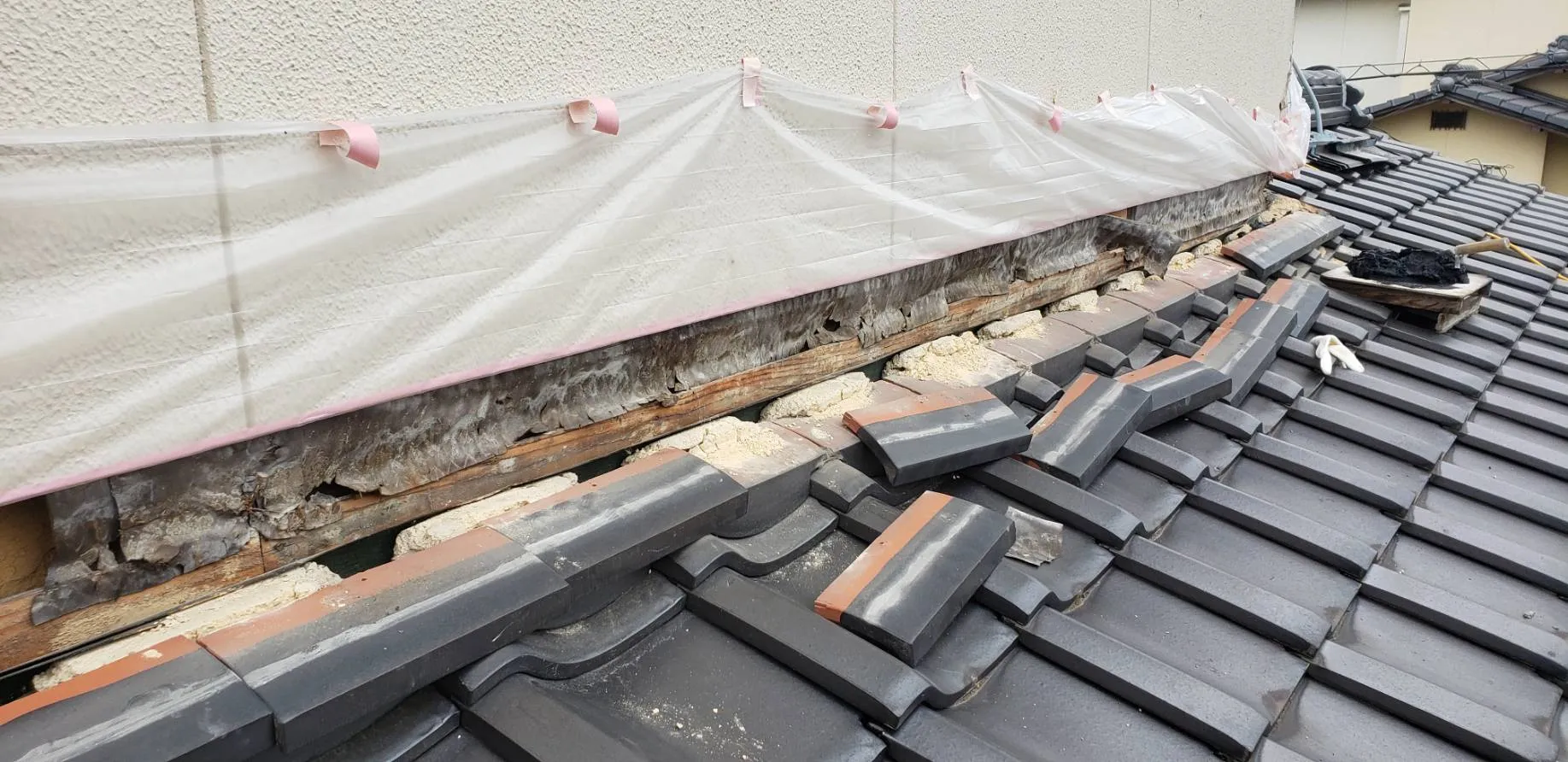 のし瓦を一度撤去して傷んだ屋根土も撤去します。