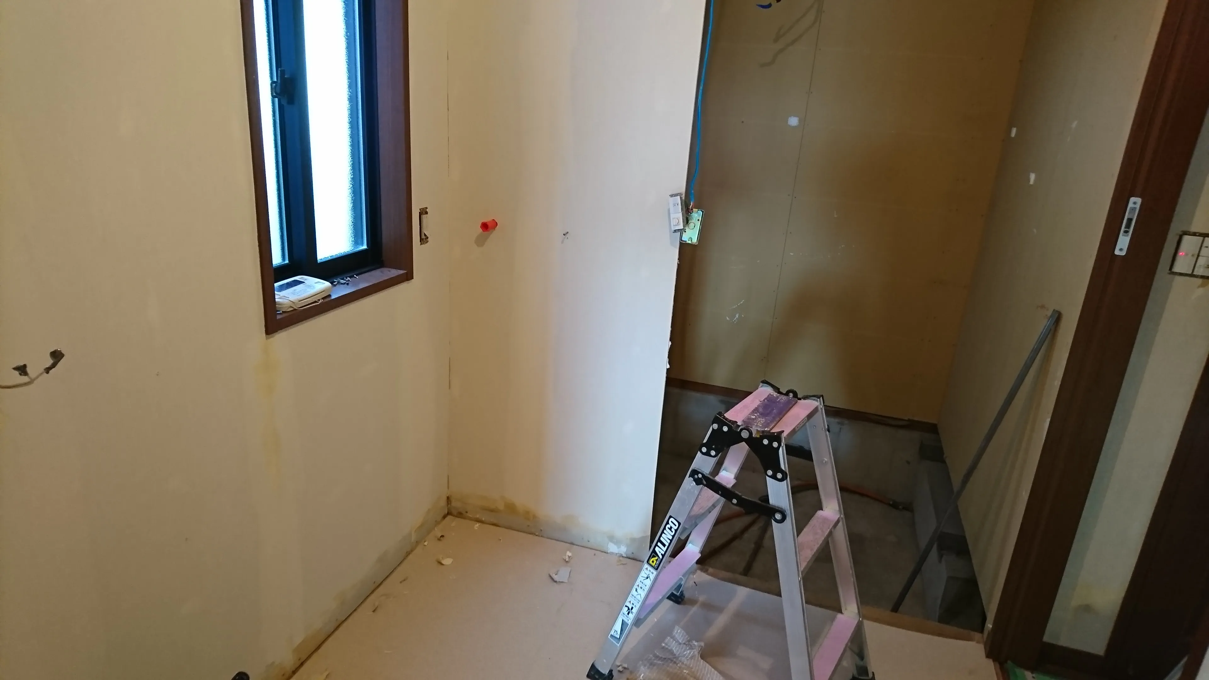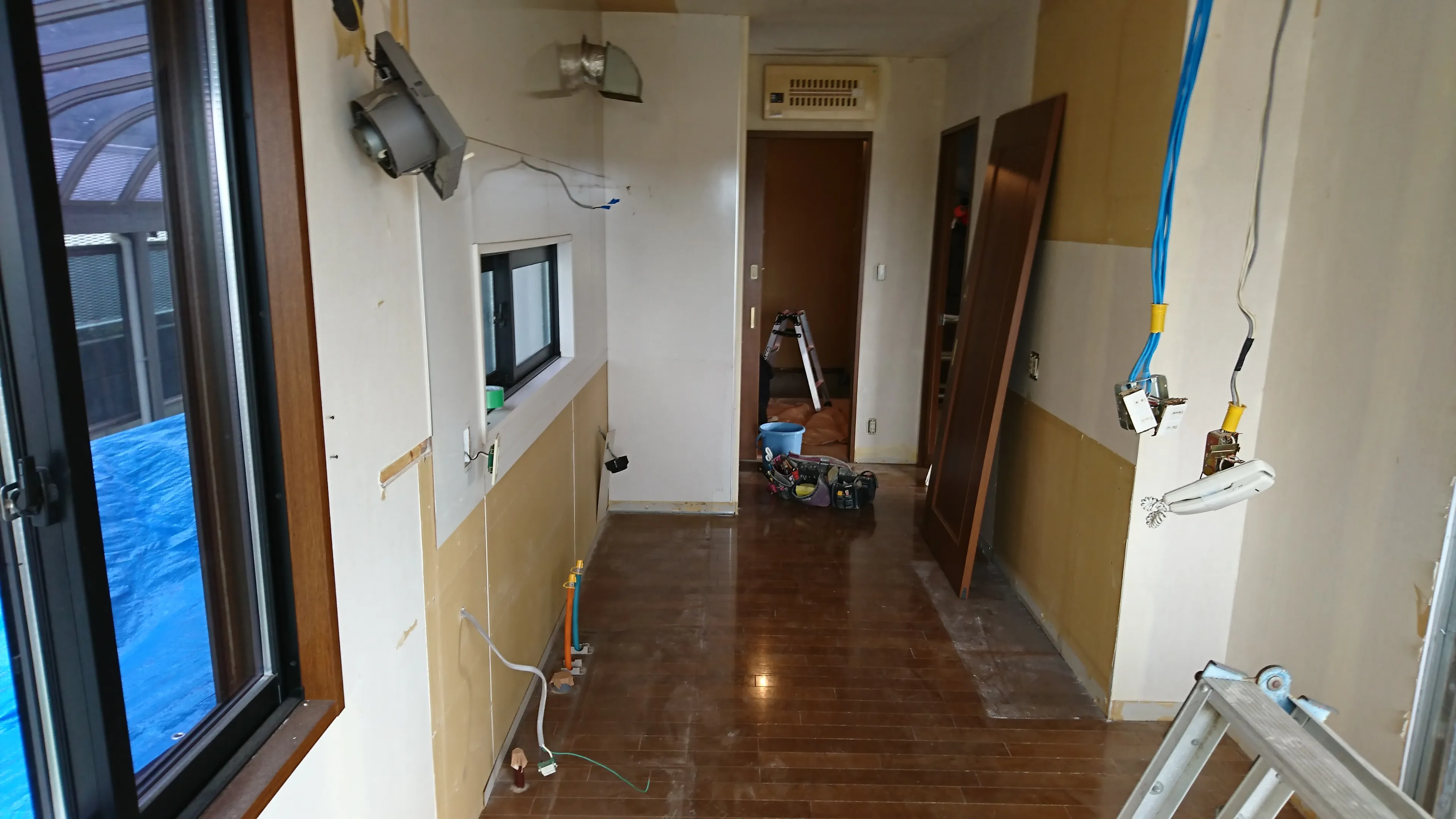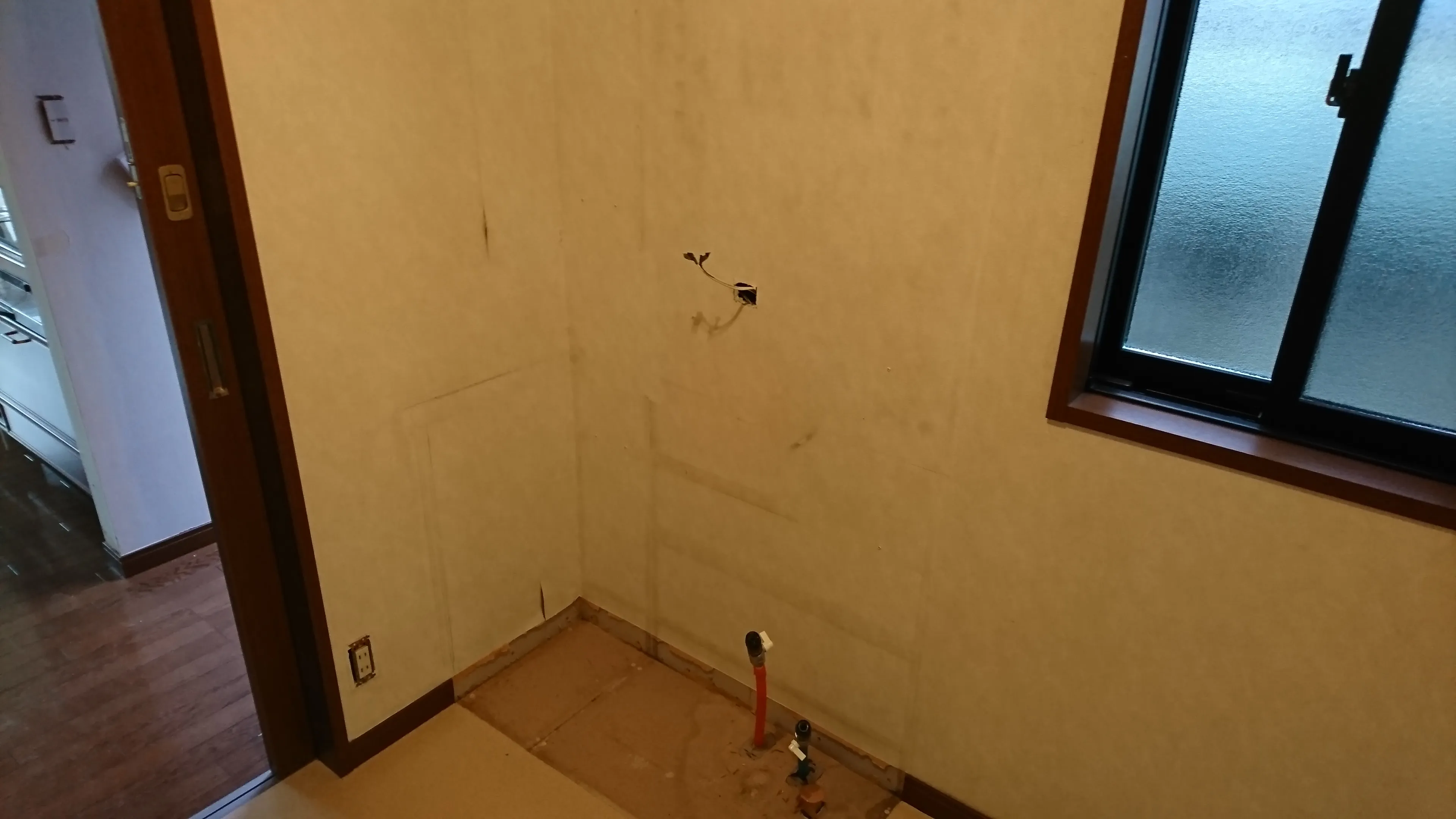 お客様からのご要望があり、壁を撤去し取合い部の補修をしています。