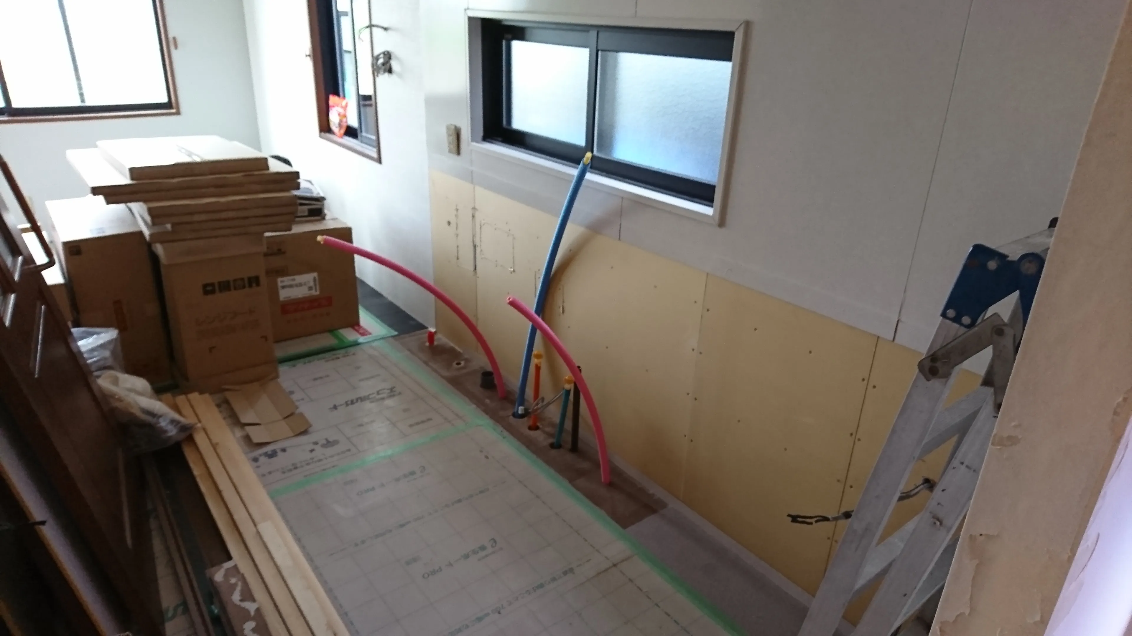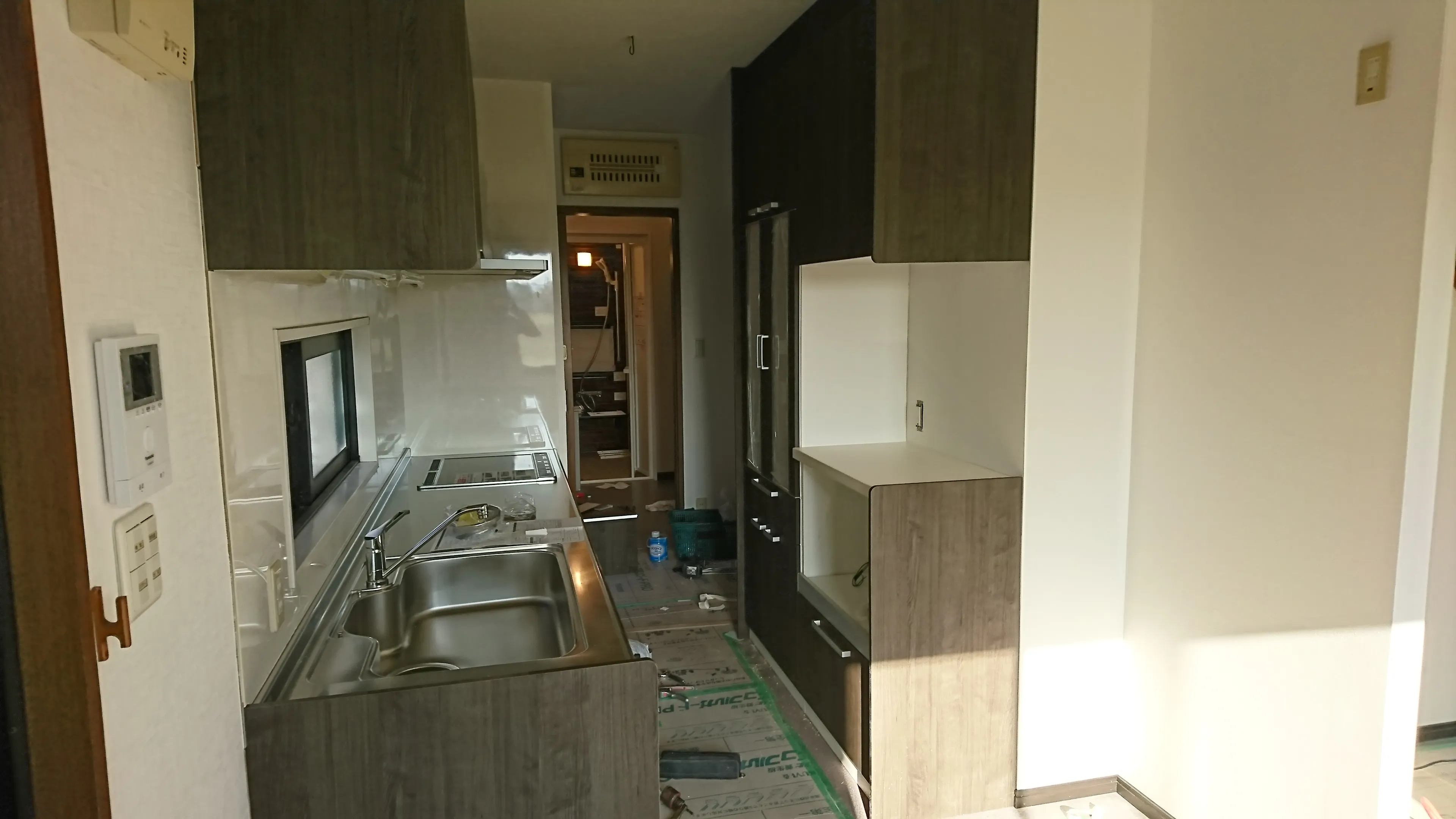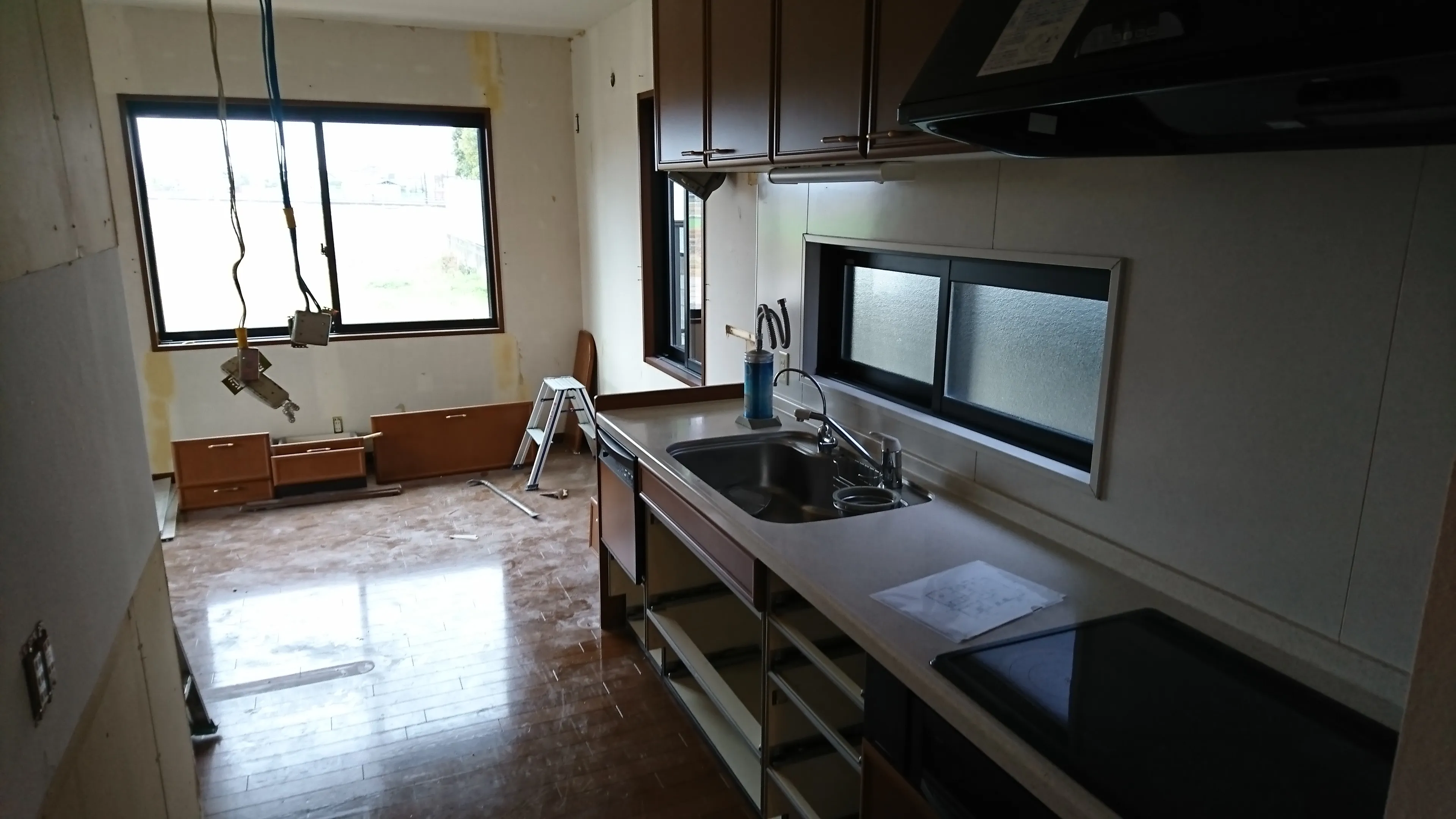 お客様からのご要望があり、壁を撤去し取合い部の補修をしています。