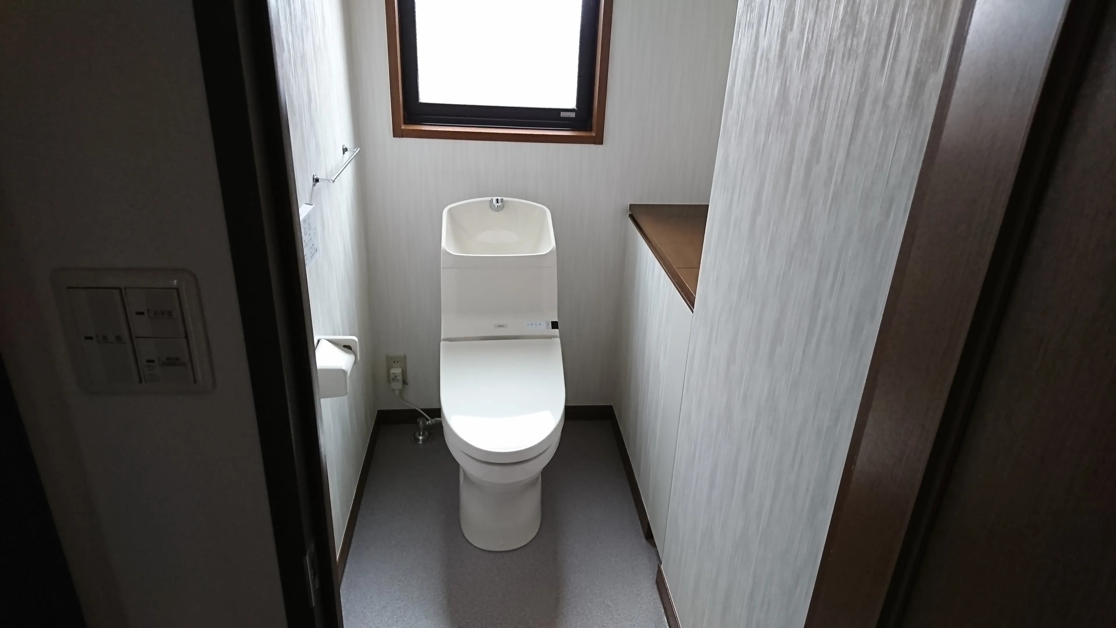 トイレも壁と床の工事が終わり便器を復旧しました。