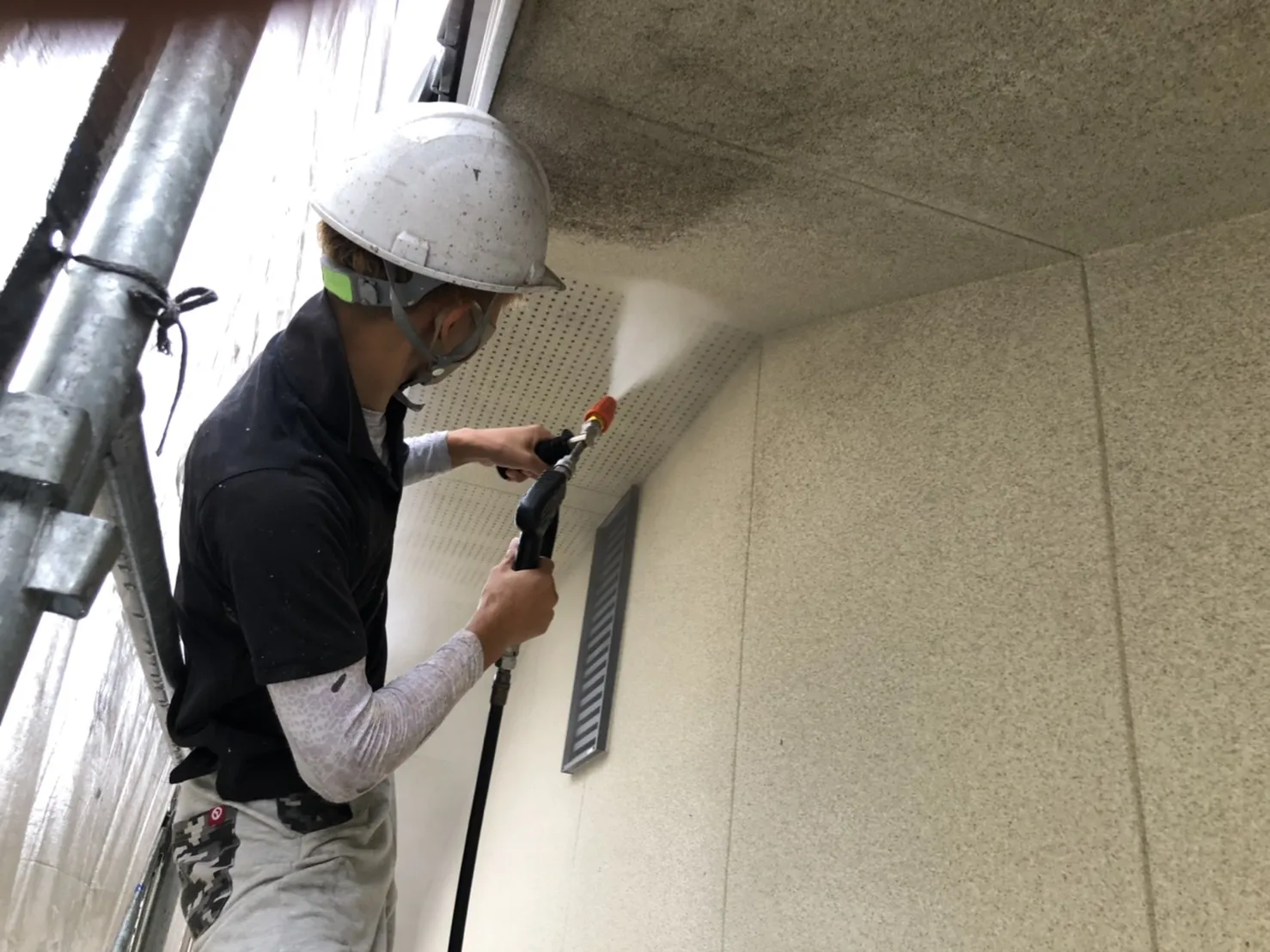 外壁塗装 高圧洗浄中