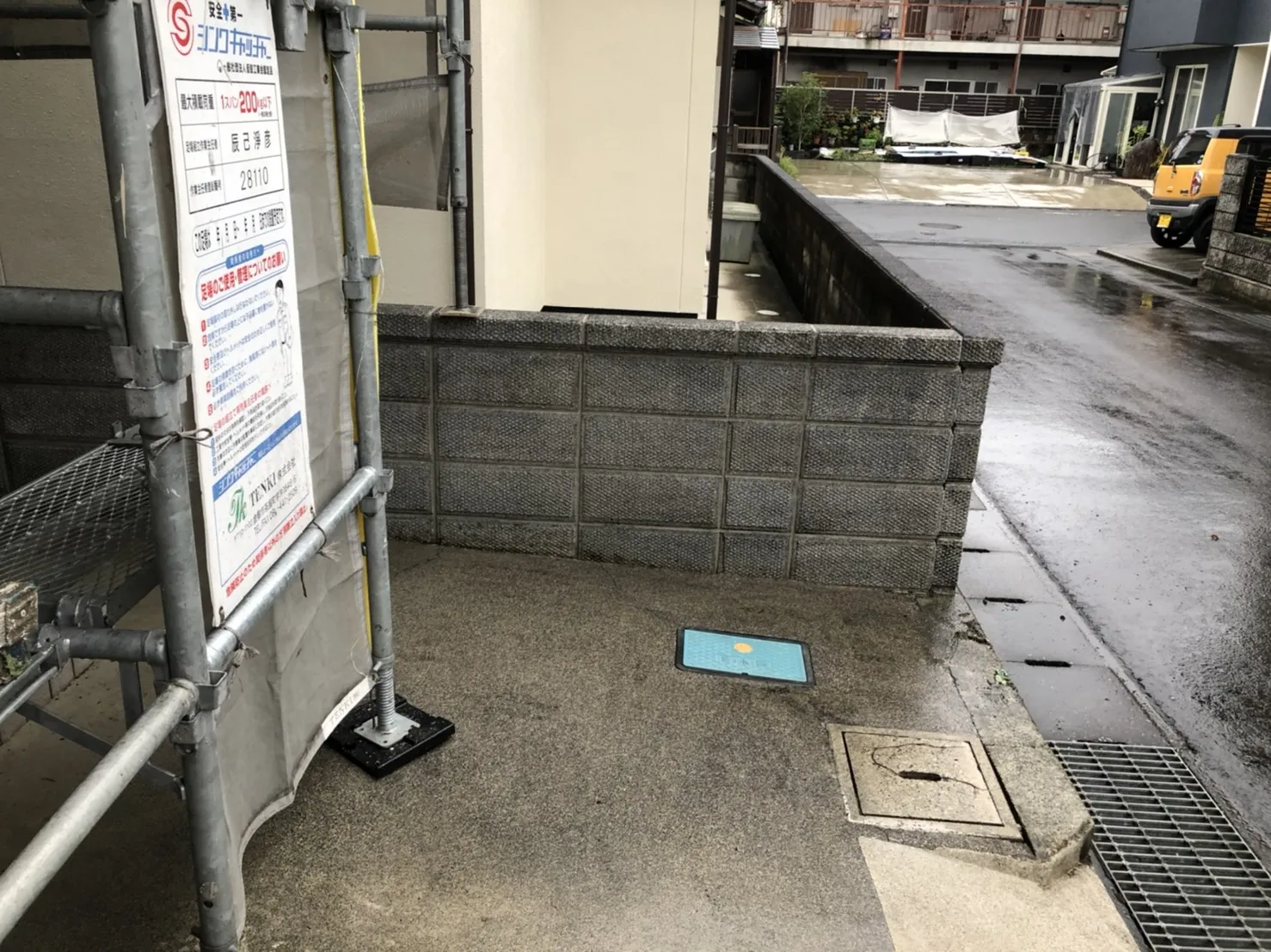 土間コンクリートや側溝の蓋まで綺麗に洗浄します。