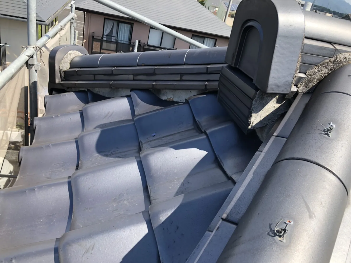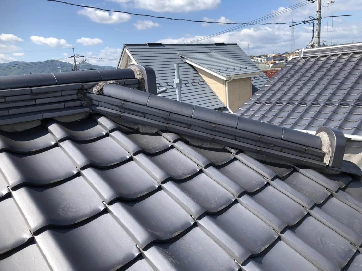 屋根の漆喰が劣化してきているので補修します。