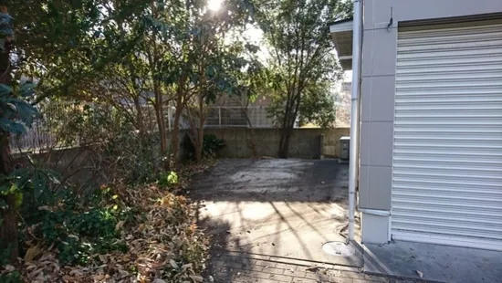 施工前の土間コンクリート部分は木の葉・土埃・苔などで汚れていました。