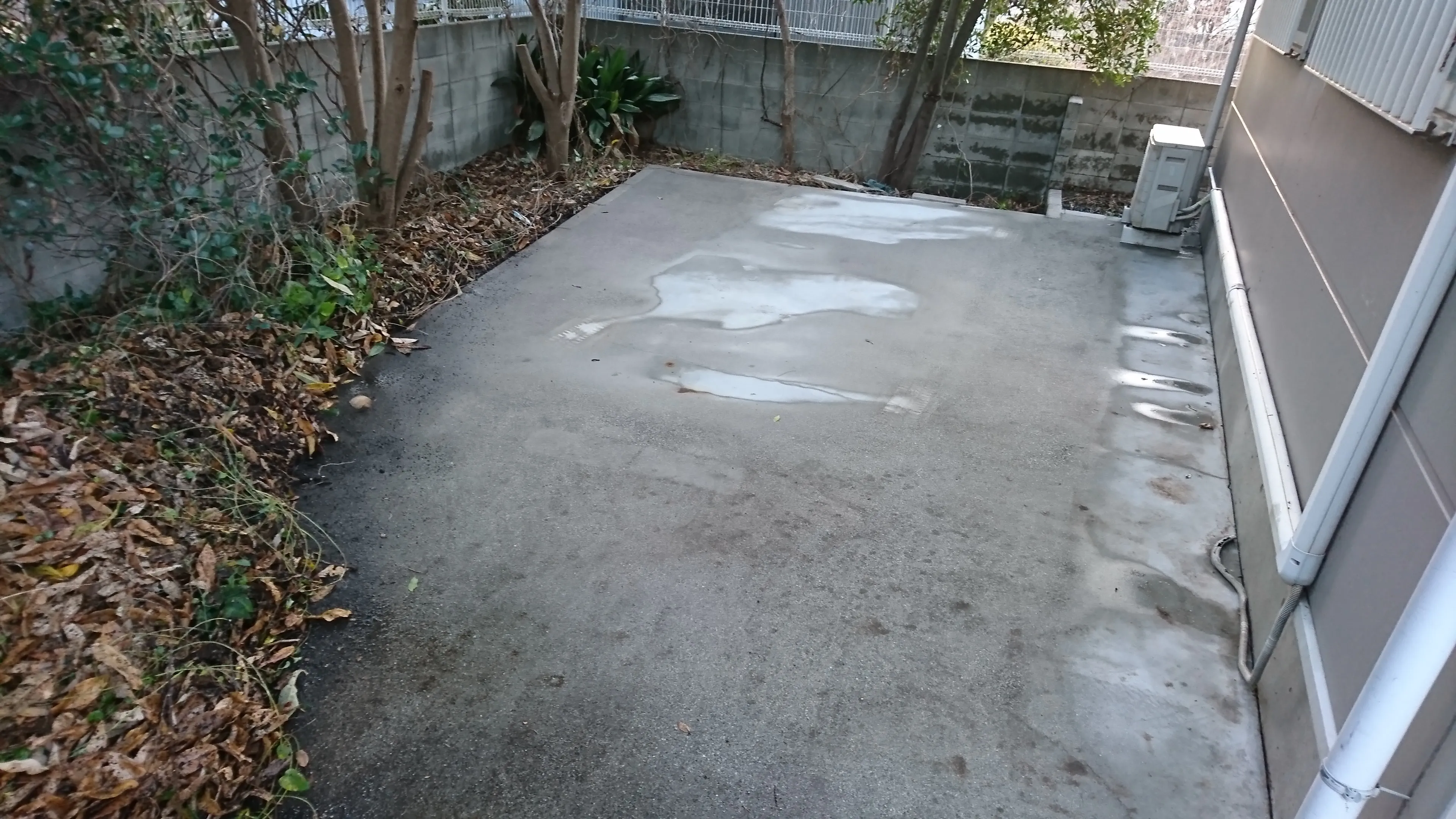 洗浄後は土間コンクリートの汚れが落ちて綺麗になりました。