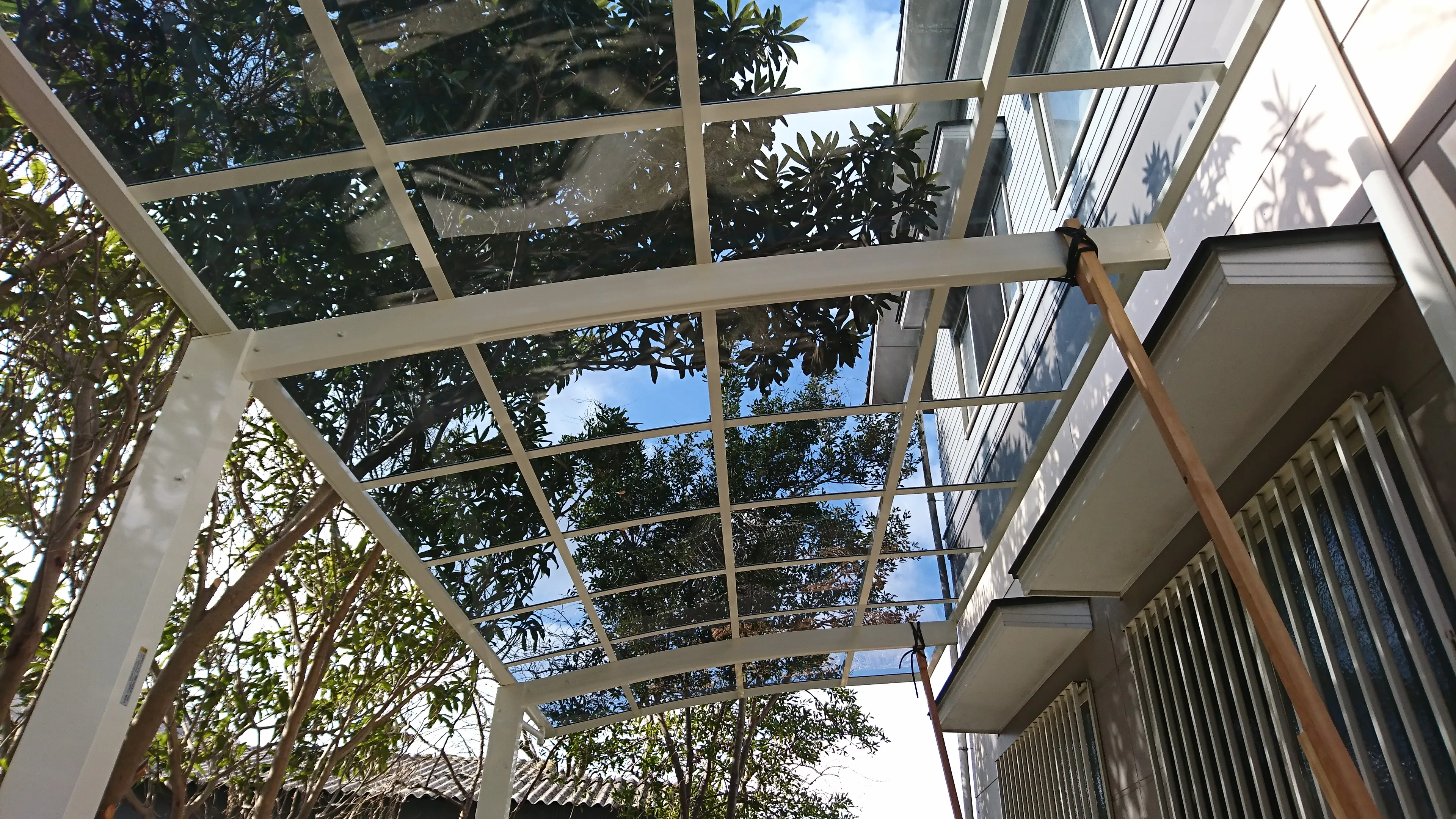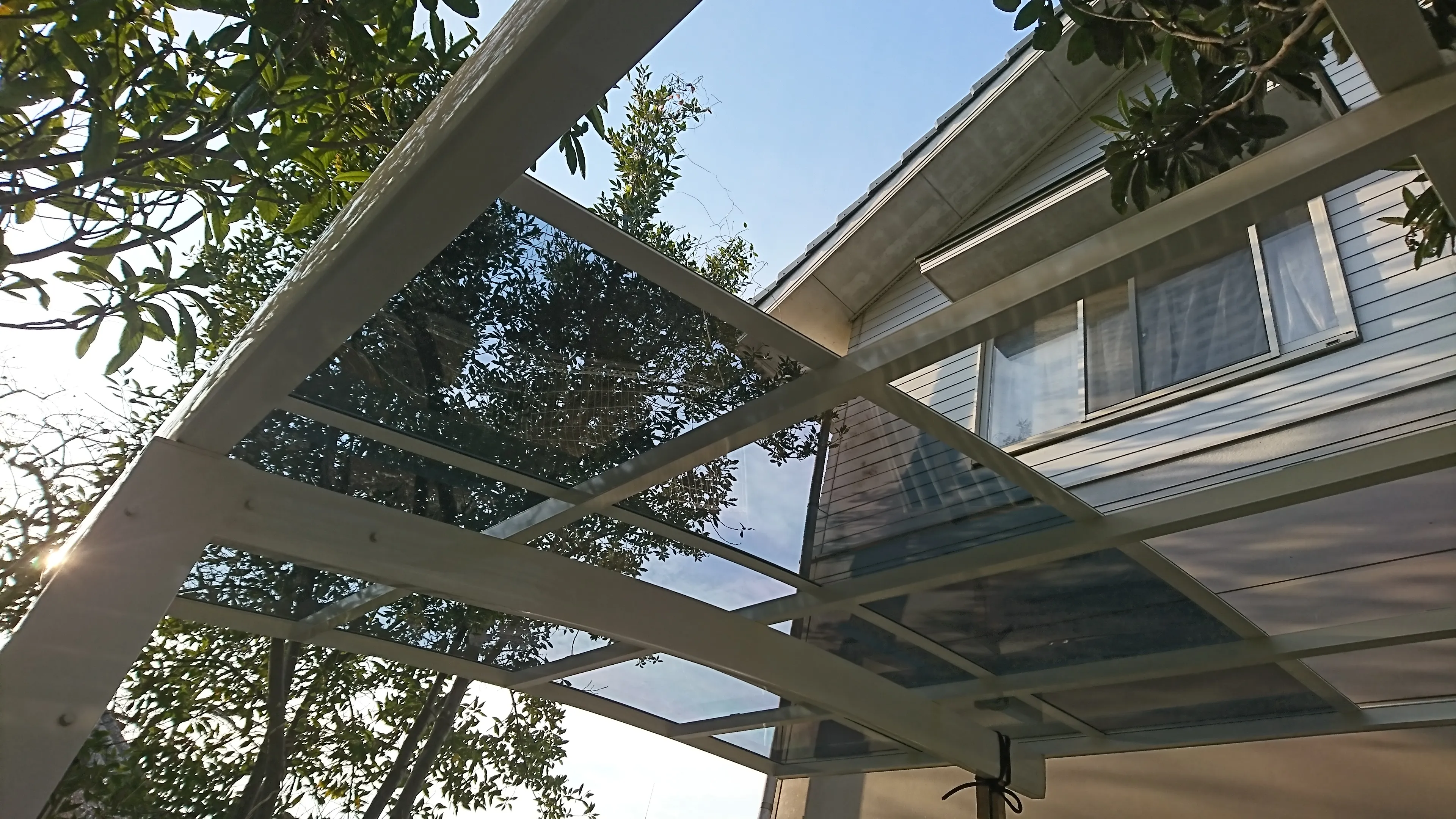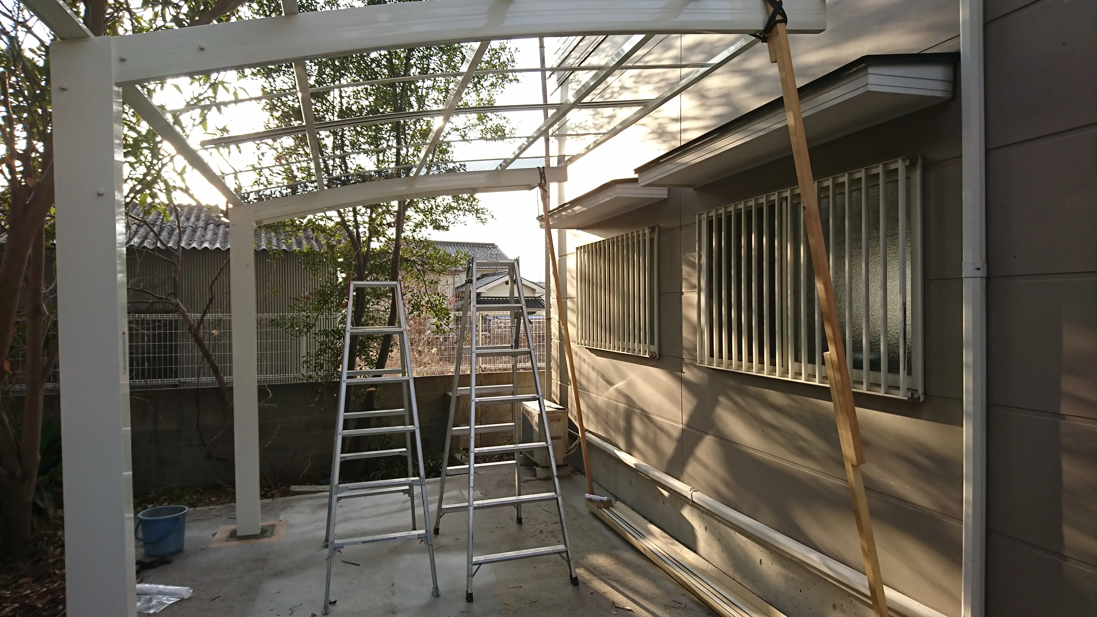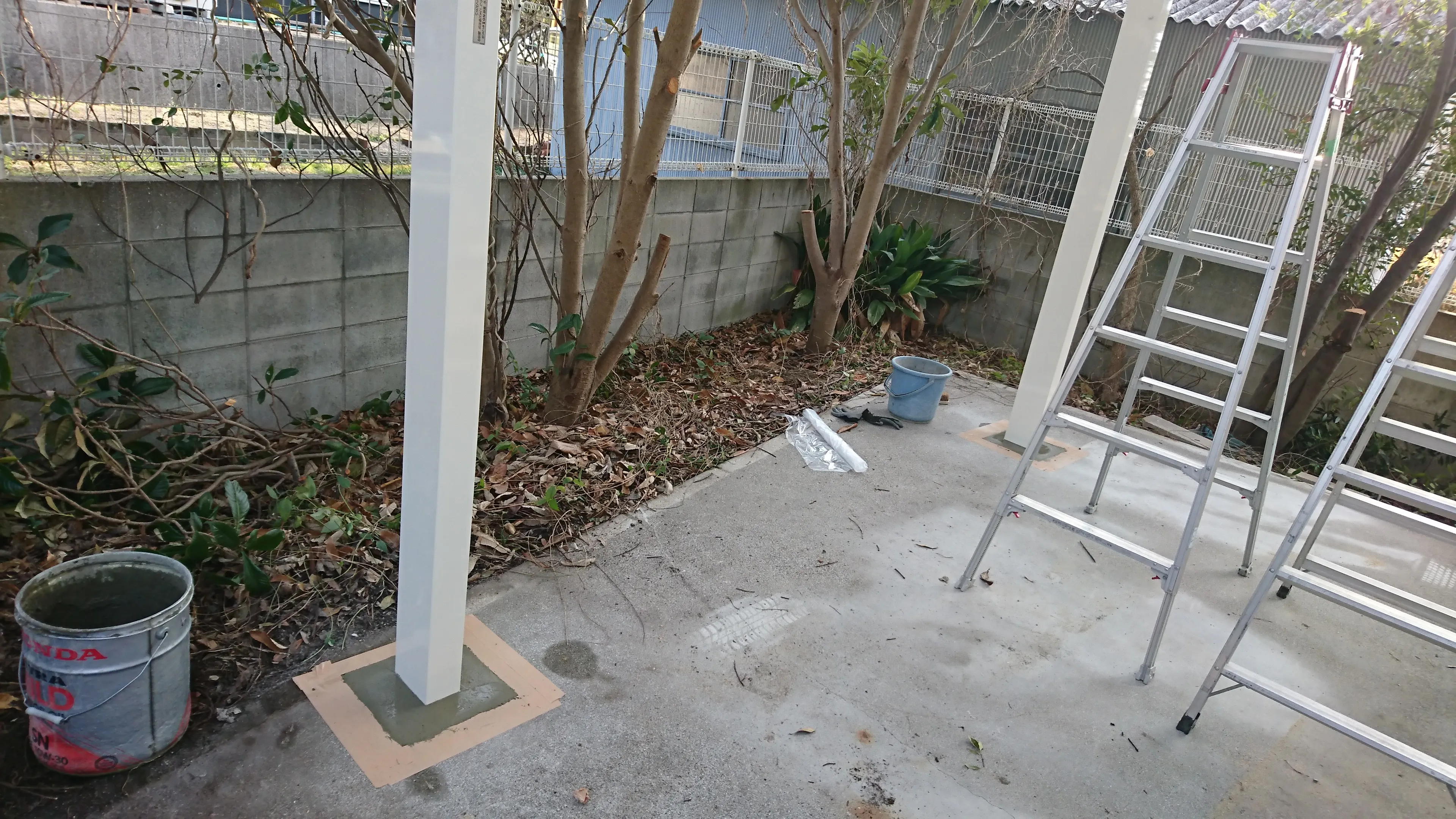 カーポート支柱のコンクリート硬化後支えの木柱を撤去し施工完了です。