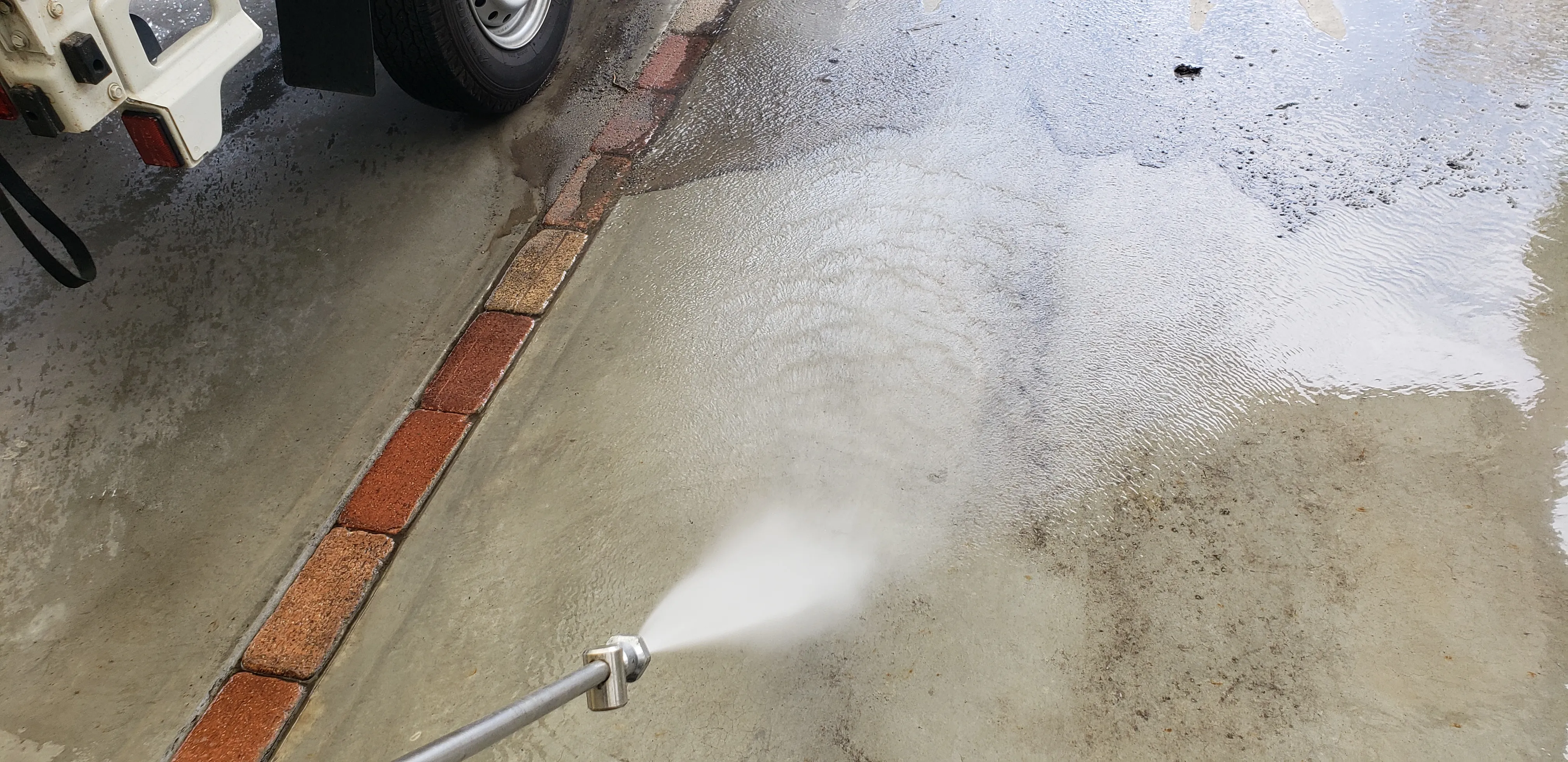 駐車場の土間コンクリートも綺麗に洗浄します。