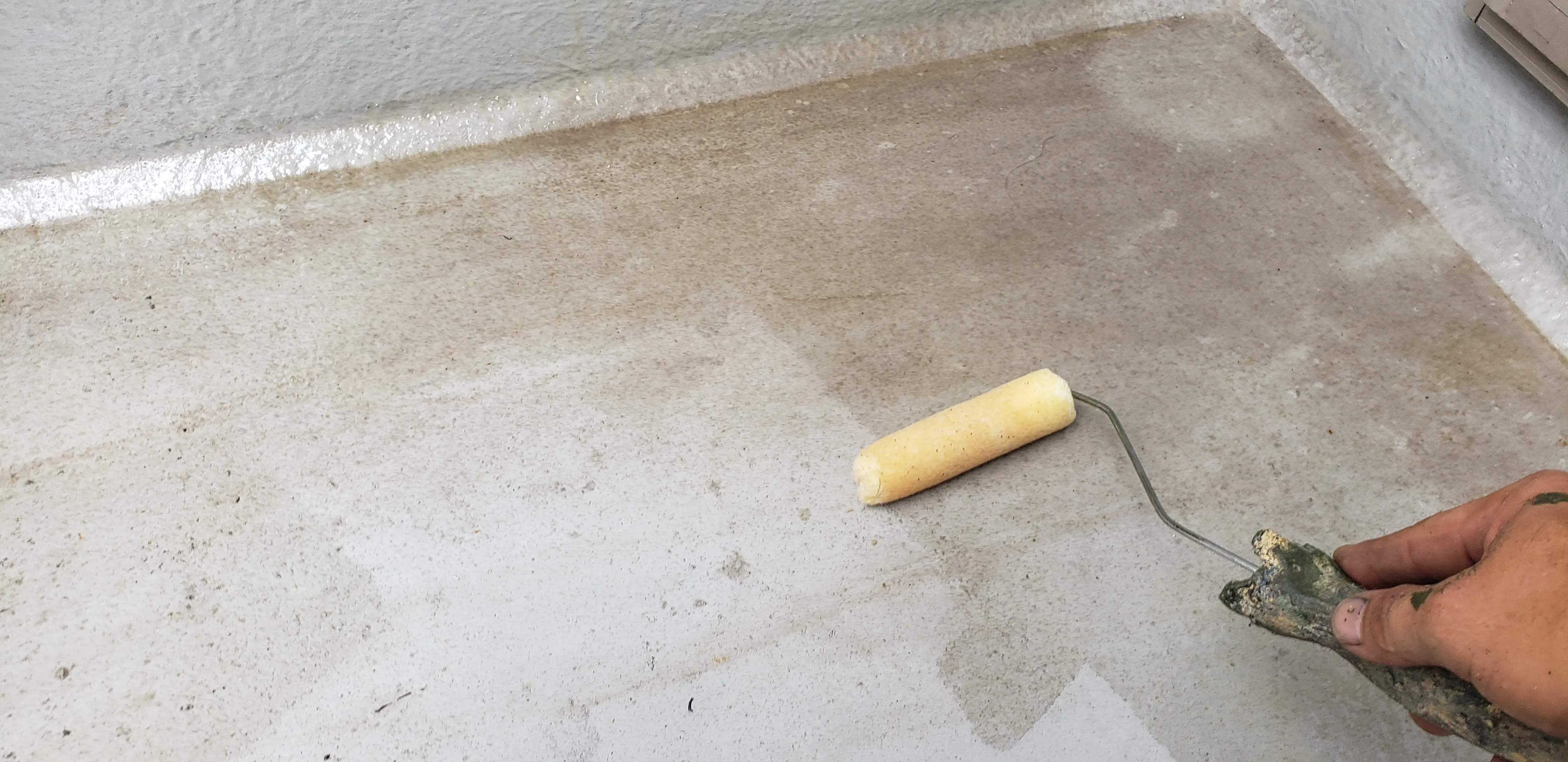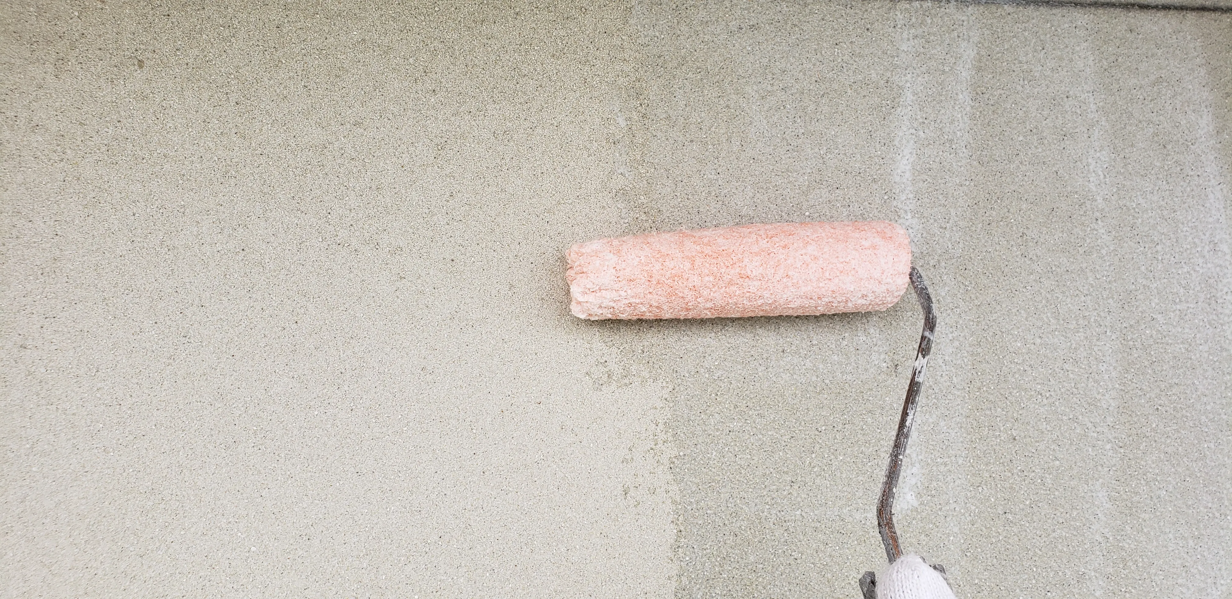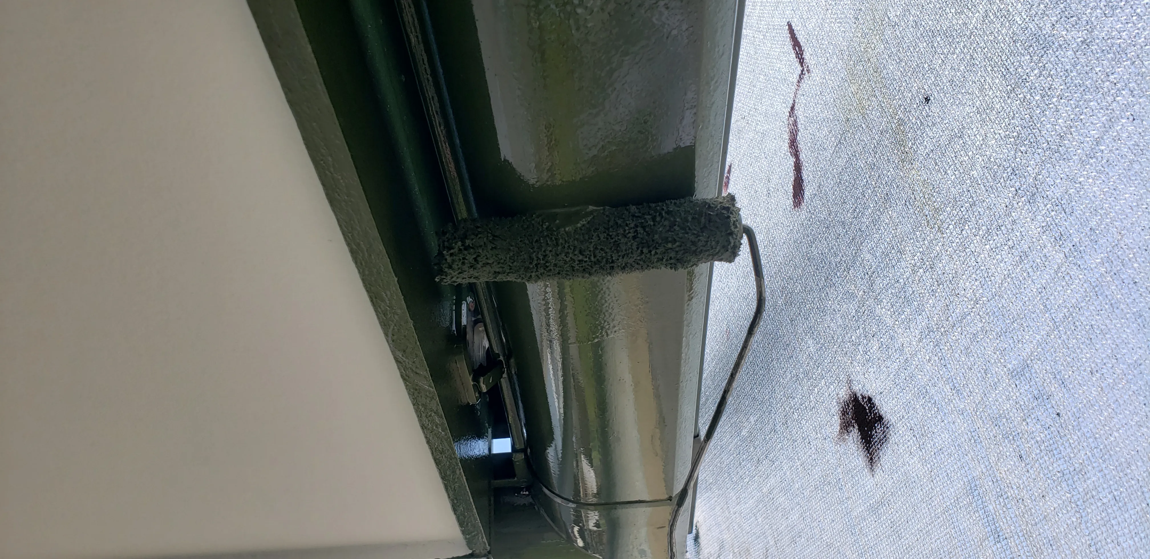 ベランダ防水工事 FRP用トップコート中塗り中です。