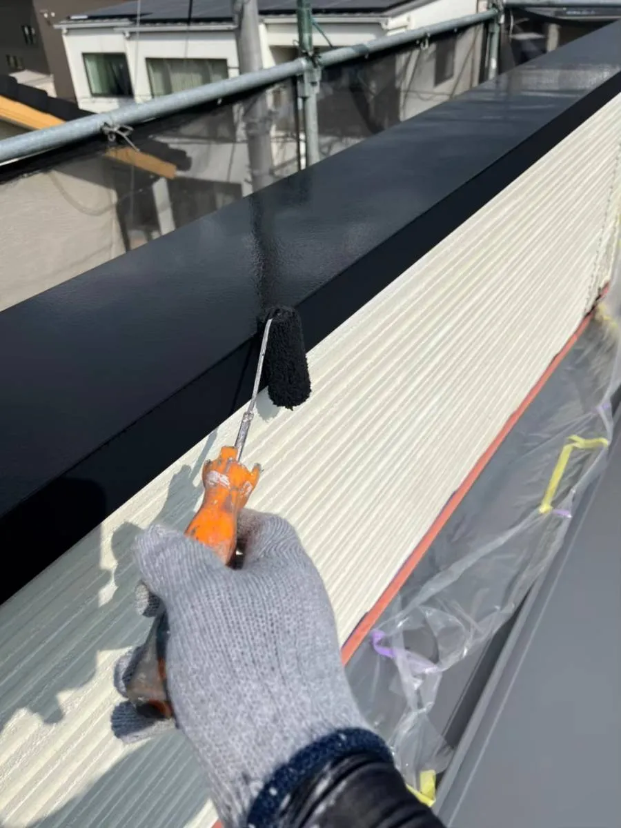 板金笠木塗装中