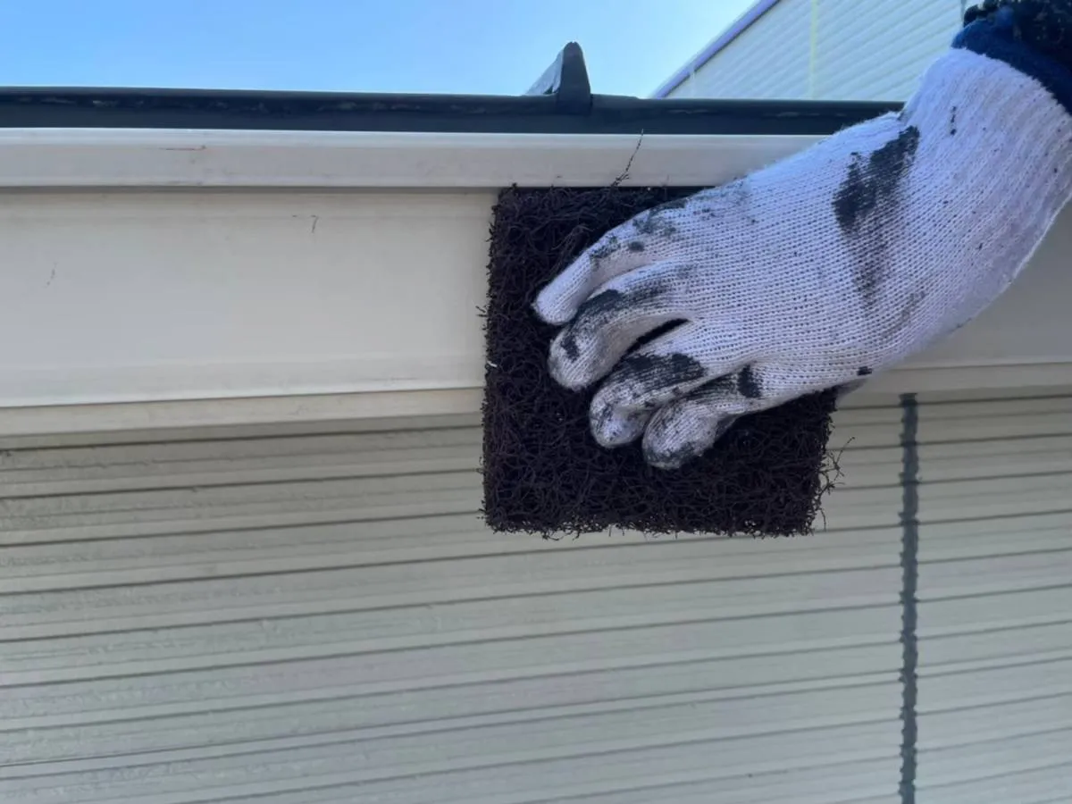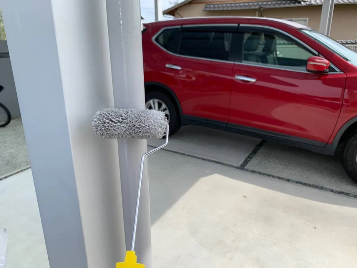 他の業者様が見落としがちなカーポートの雨樋も綺麗に塗装します。