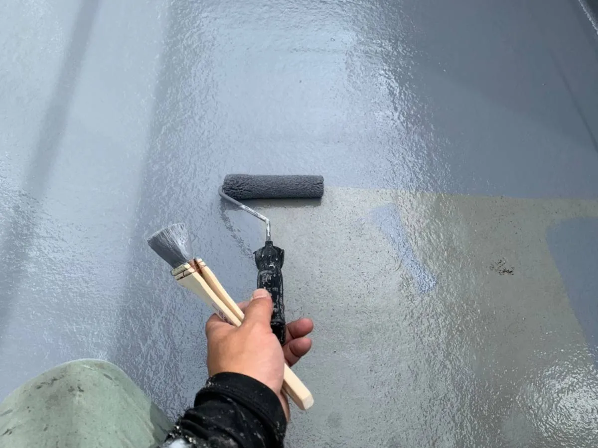 屋根塗装 上塗り中