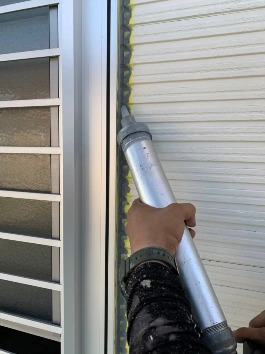 窓廻りシーリング充填中