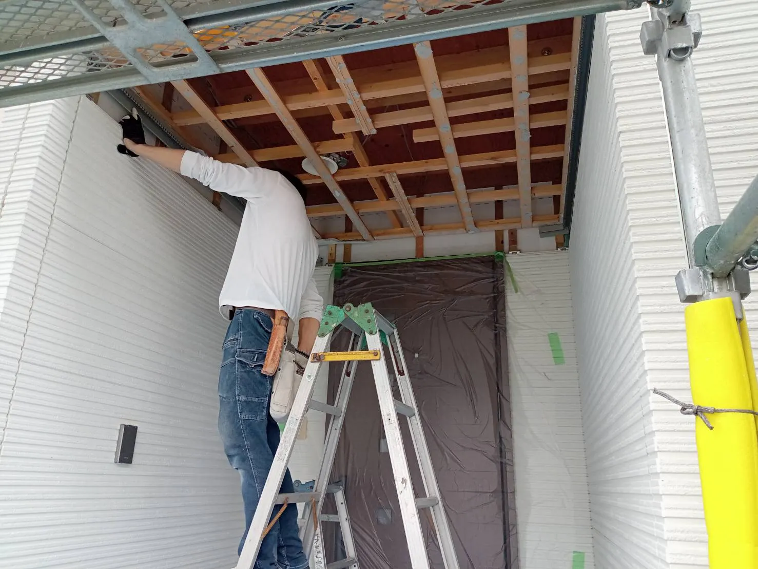 まずは仮設足場を組み立てます。
