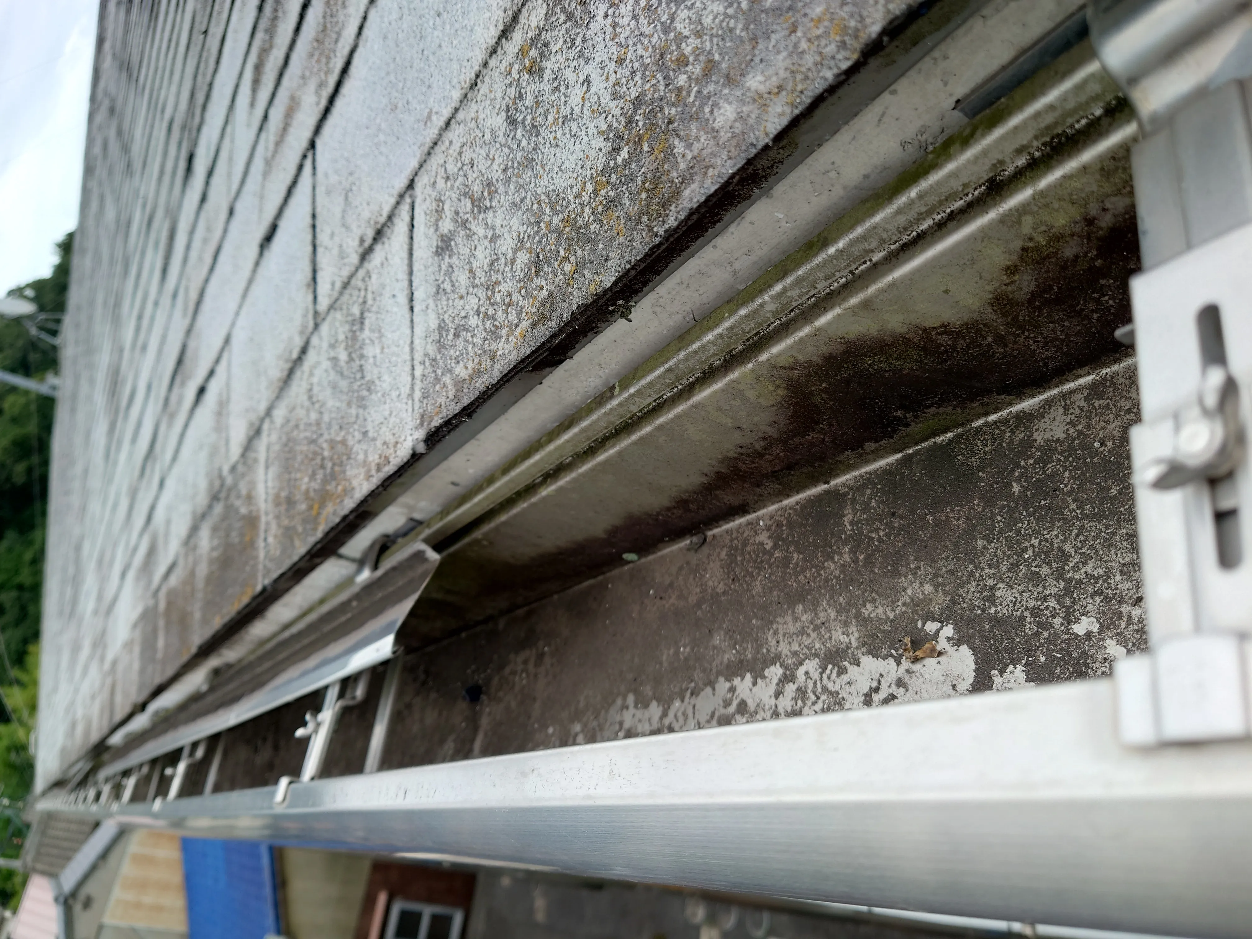 屋根水切りがすべてずれ落ちて雨樋の中にいます。