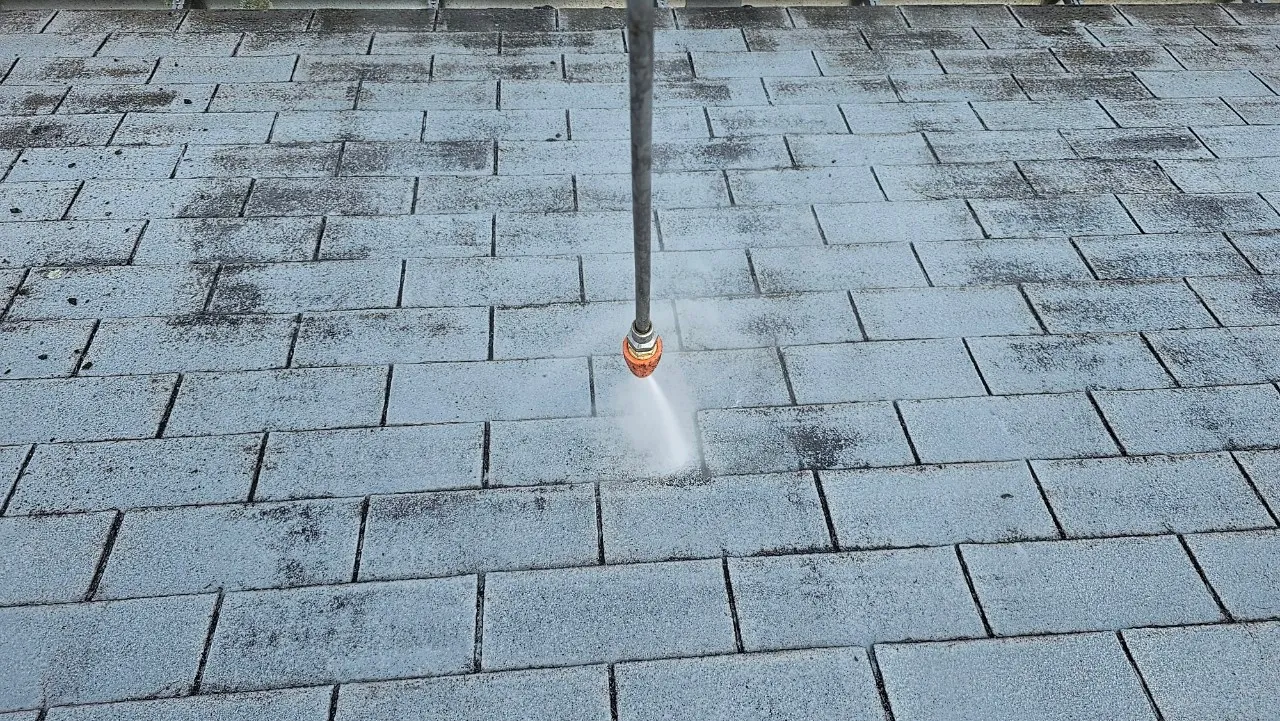 屋根に落ちた雨水が樋に行く事なく地面に落下します。