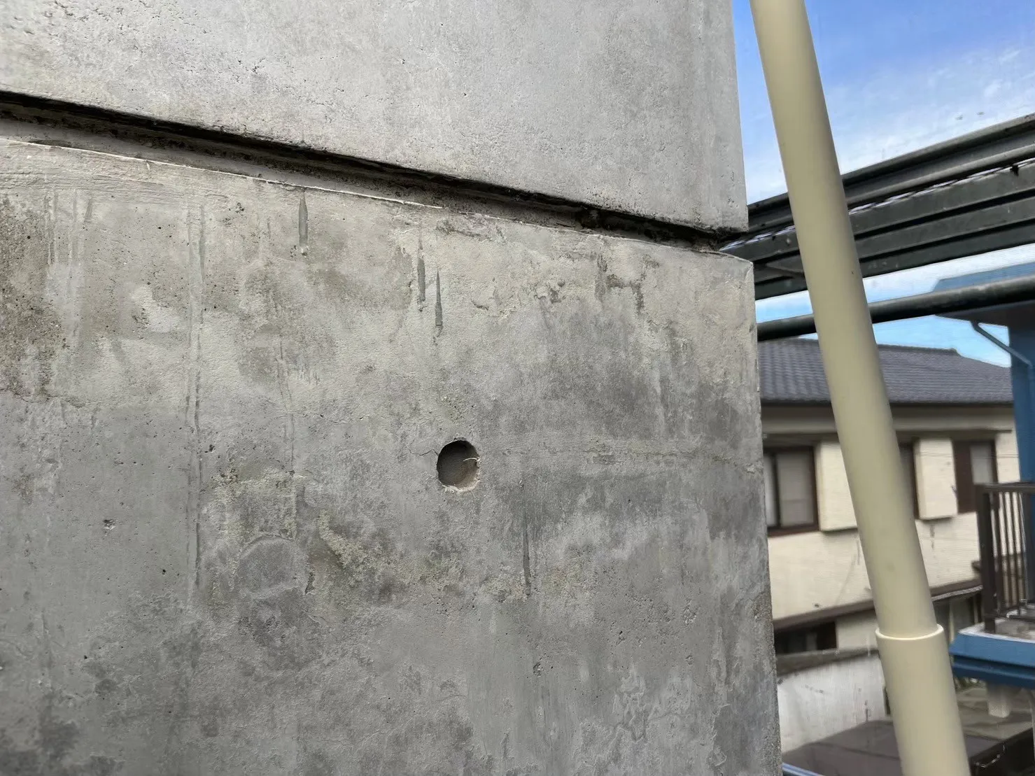 コンクリート打放し面の傷み具合がかなりひどいです。