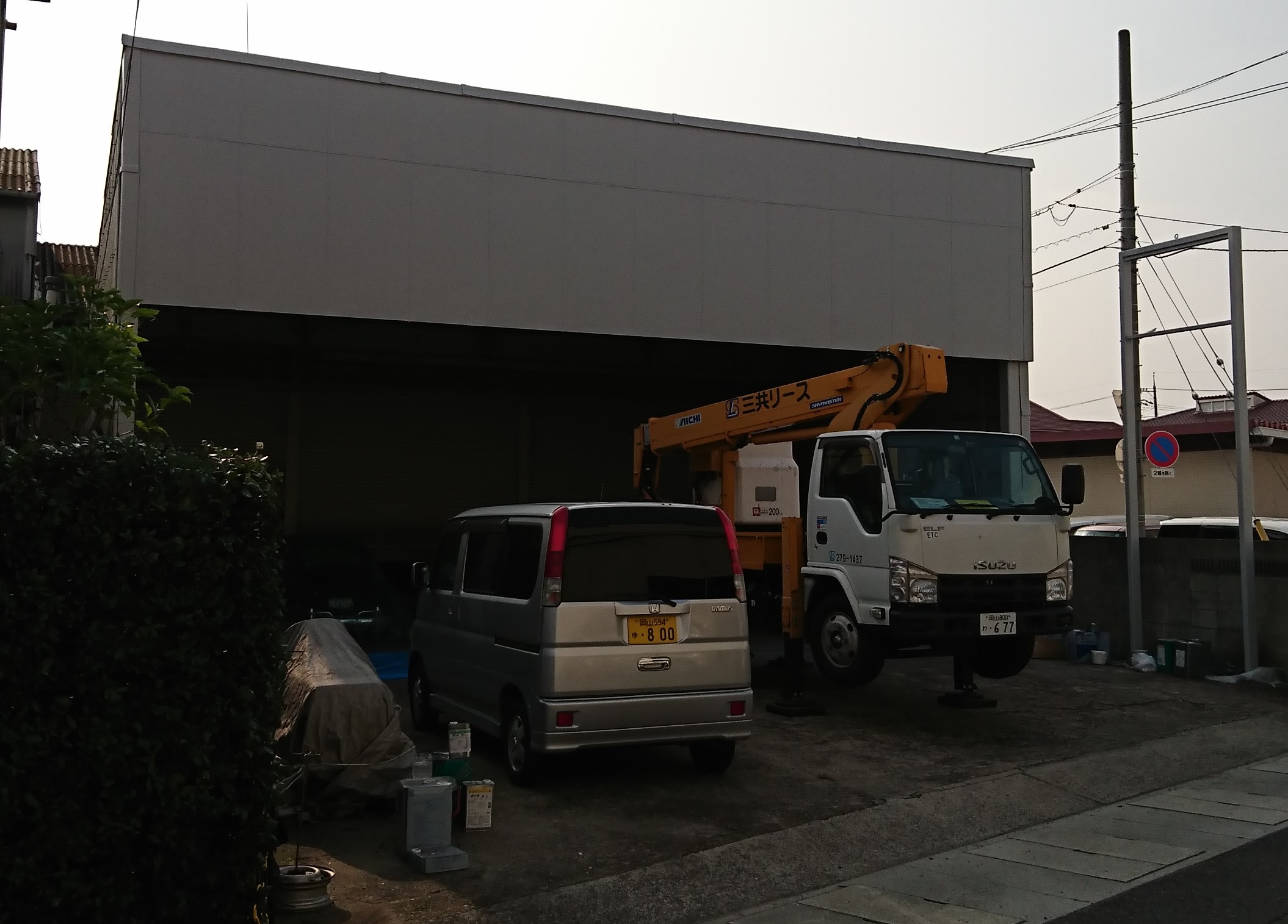 まずは鉄骨塗装工事に備えて、古い看板と必要なくなった